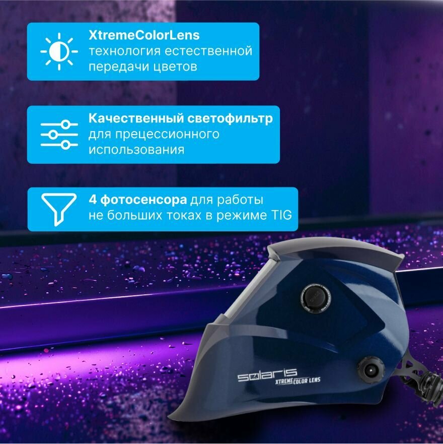 Маска сварочная хамелеон Solaris ASF650Х (синий металлик) (1/1/1/2; 100x45 мм; DIN 3/9-13)