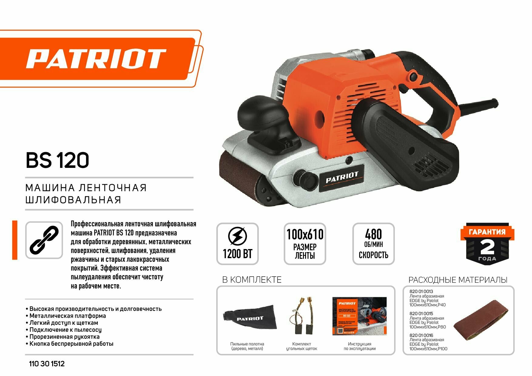 Patriot 110301512 Машина ленточная шлифовальная (лшм) BS 120 .
