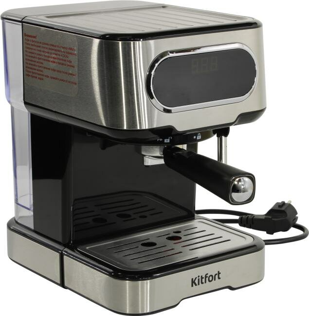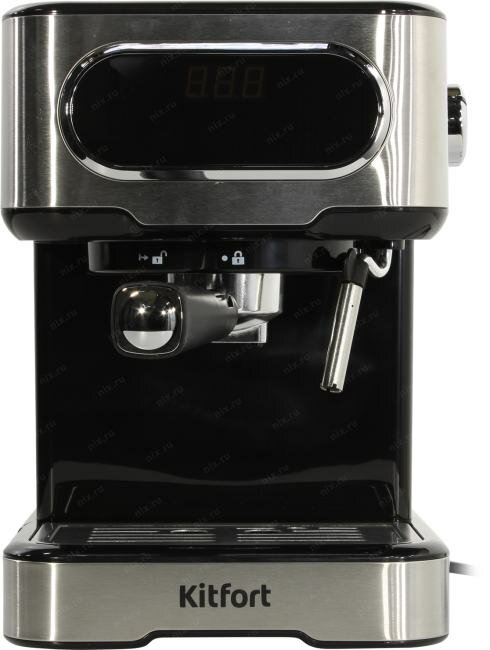 Купить Кофеварка рожковая Kitfort KT-765, 1100 Вт, 15 бар, дисплей, капучинатор, платформа для чашек, съёмный резервуар для воды, серебристый