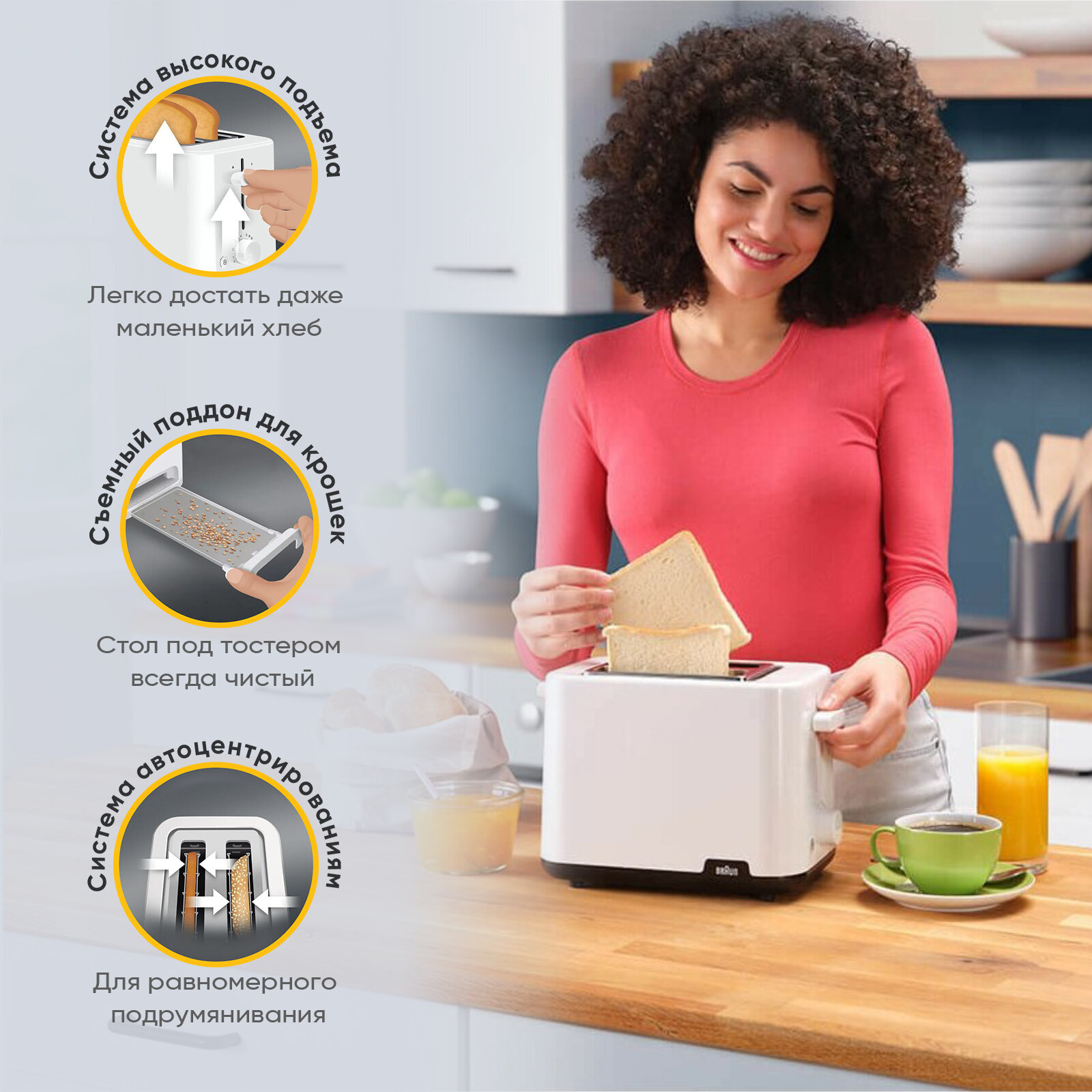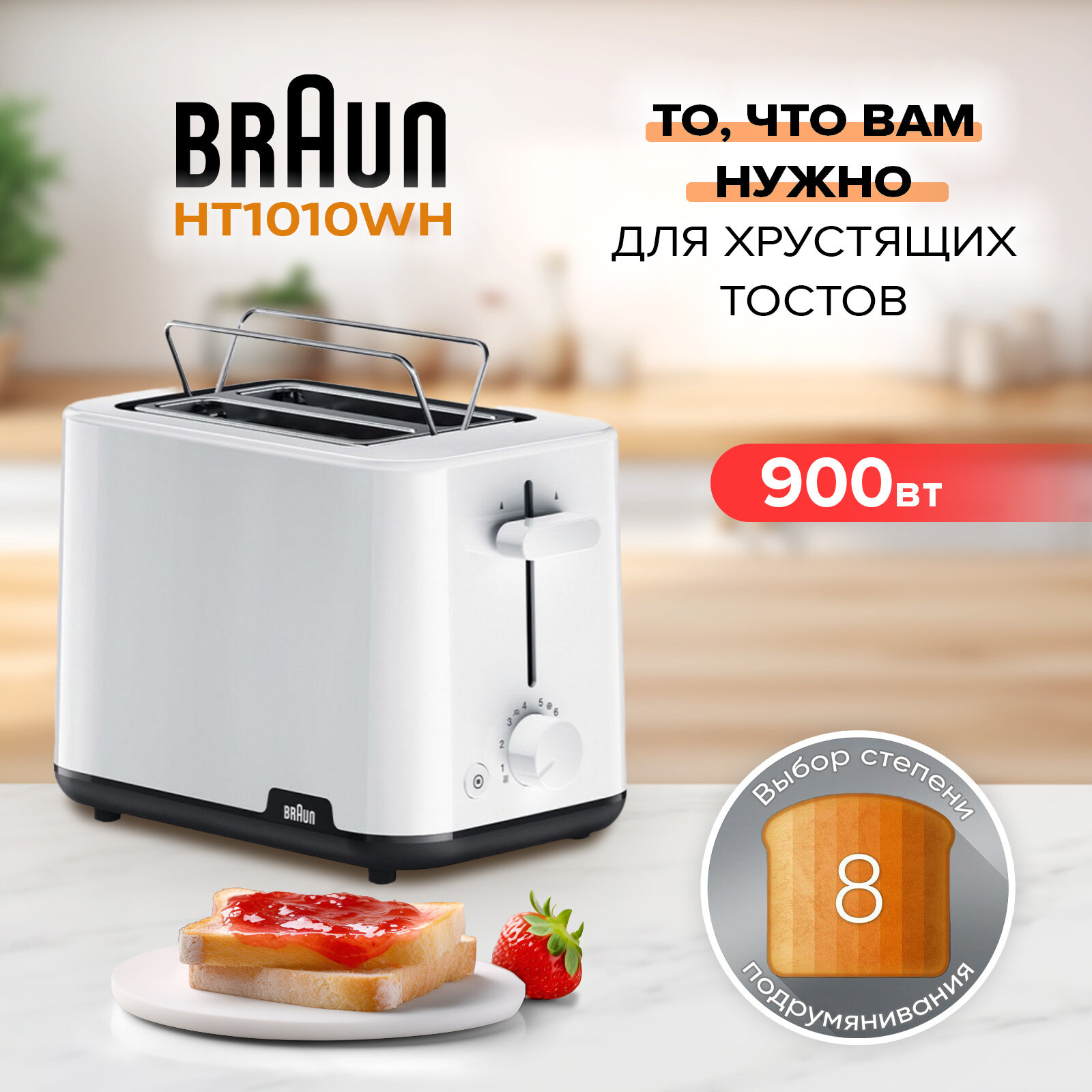 Тостер Braun HT1010WH 900Вт белый интересное: