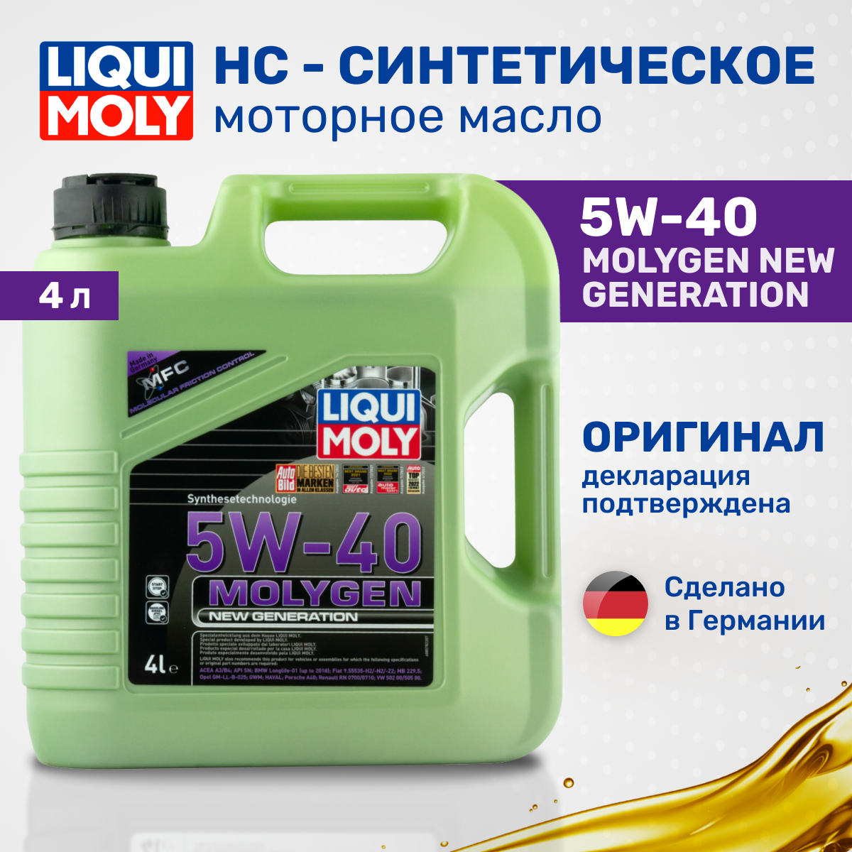 HC-синтетическое моторное масло LIQUI MOLY Molygen New Generation 5W-40, 4 л, 1 шт.