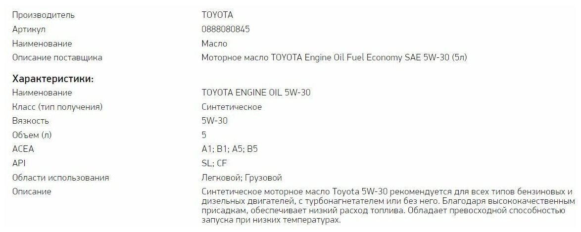 5 лет заливаю именно это масло. Тойота Авенсис и РАВ 4.... Рекомендую. |