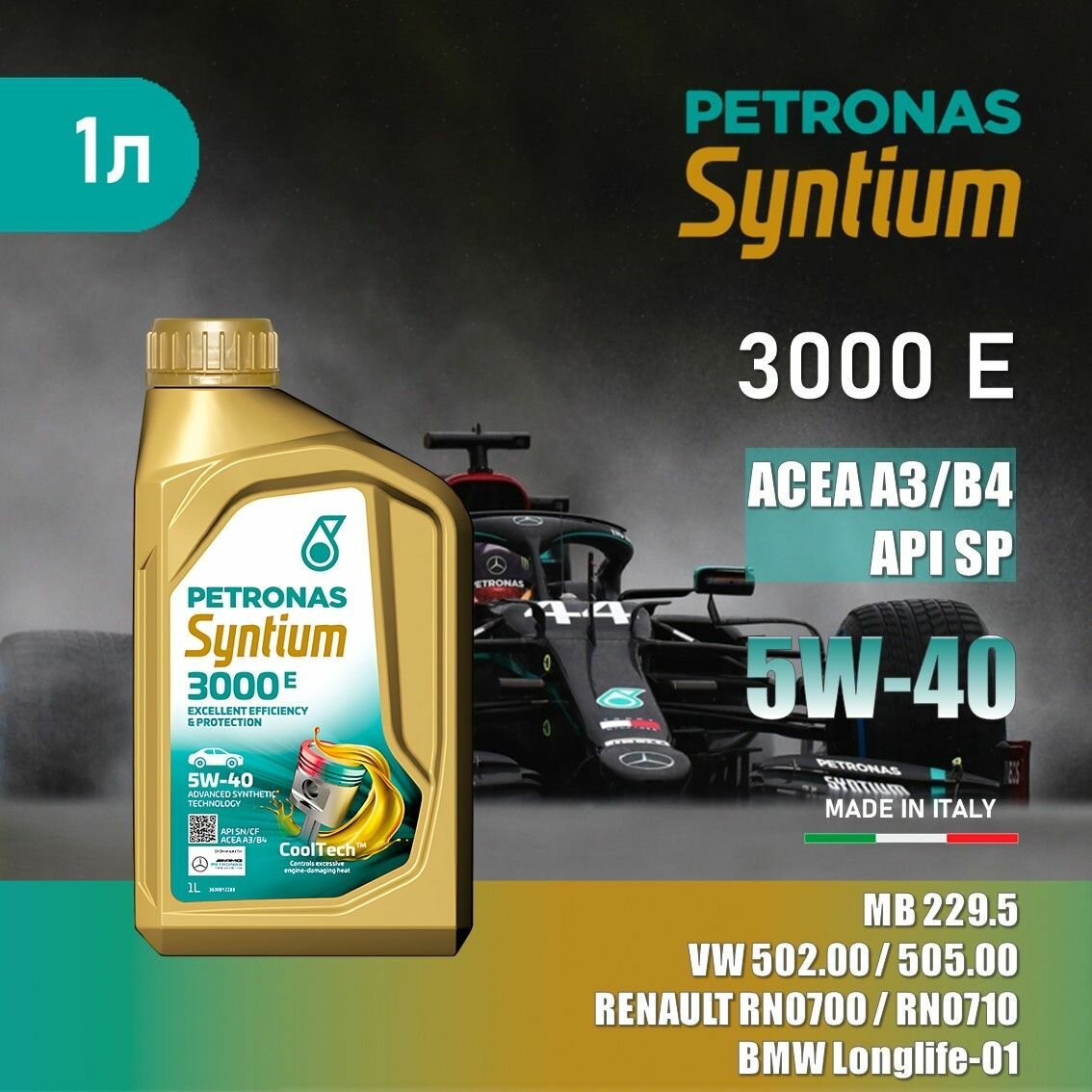 Моторное масло PETRONAS SYNTIUM 3000 E 5W40 1 литр 70134K1YEU Синтетическое API SN, CF ACEA A3 B4 MB 229.5 BMW Longlife-01 VW 502.00, 505.00 Porsche A40 Renault RN0700 RN0710