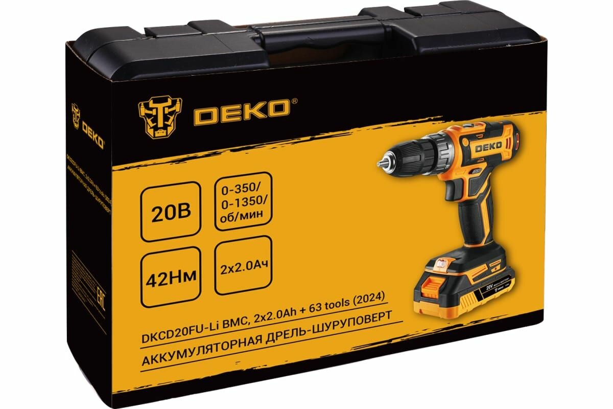 Купить Аккумуляторная дрель-шуруповерт DEKO DKCD20FU-Li в кейсе +набор 63 инструмента для дома