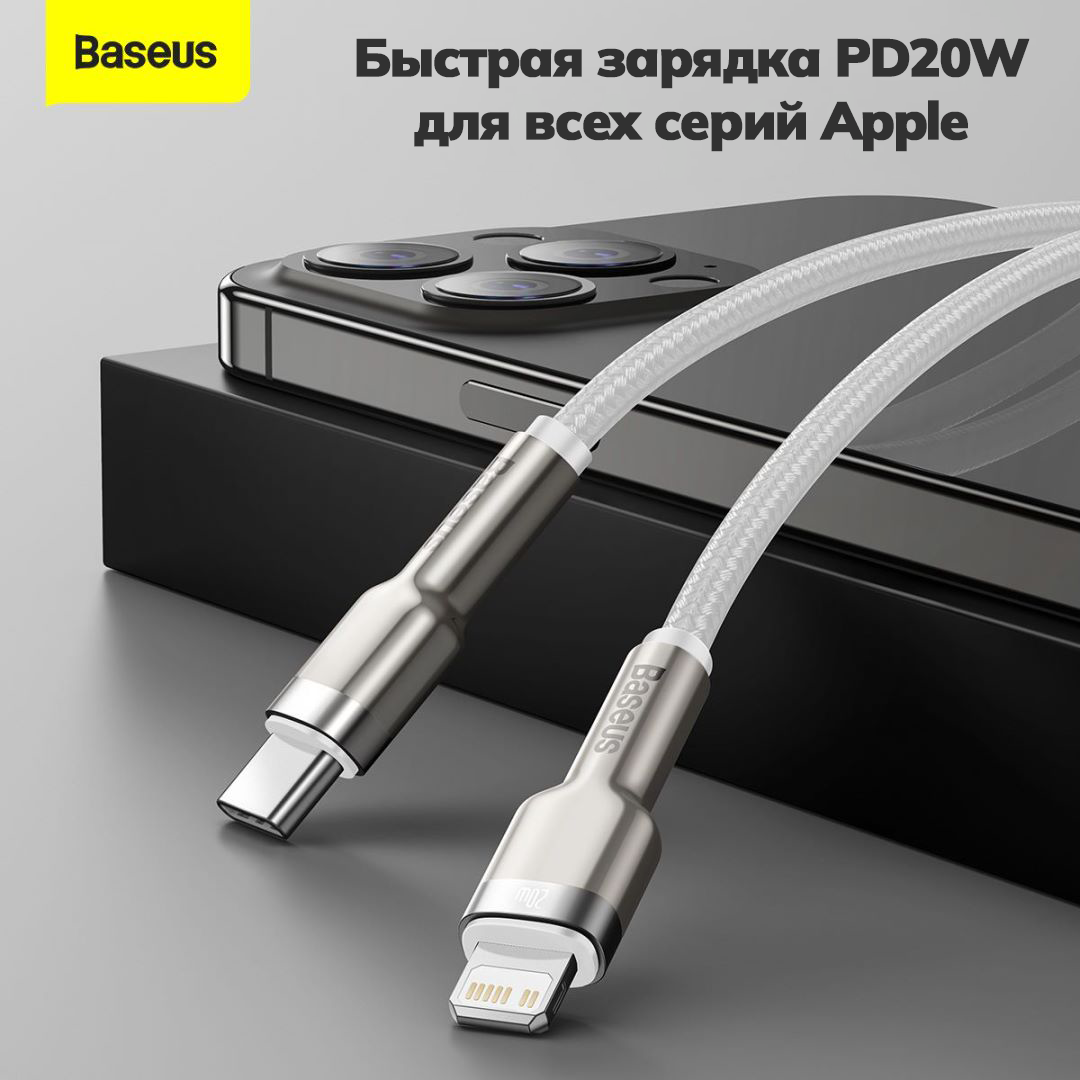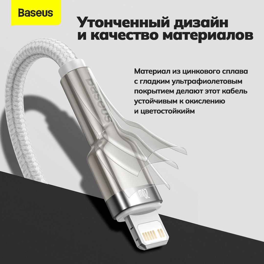 Купить Кабель BASEUS Cafule Series Metal, Type-C - Lightning, 20W, 2 м, Белый