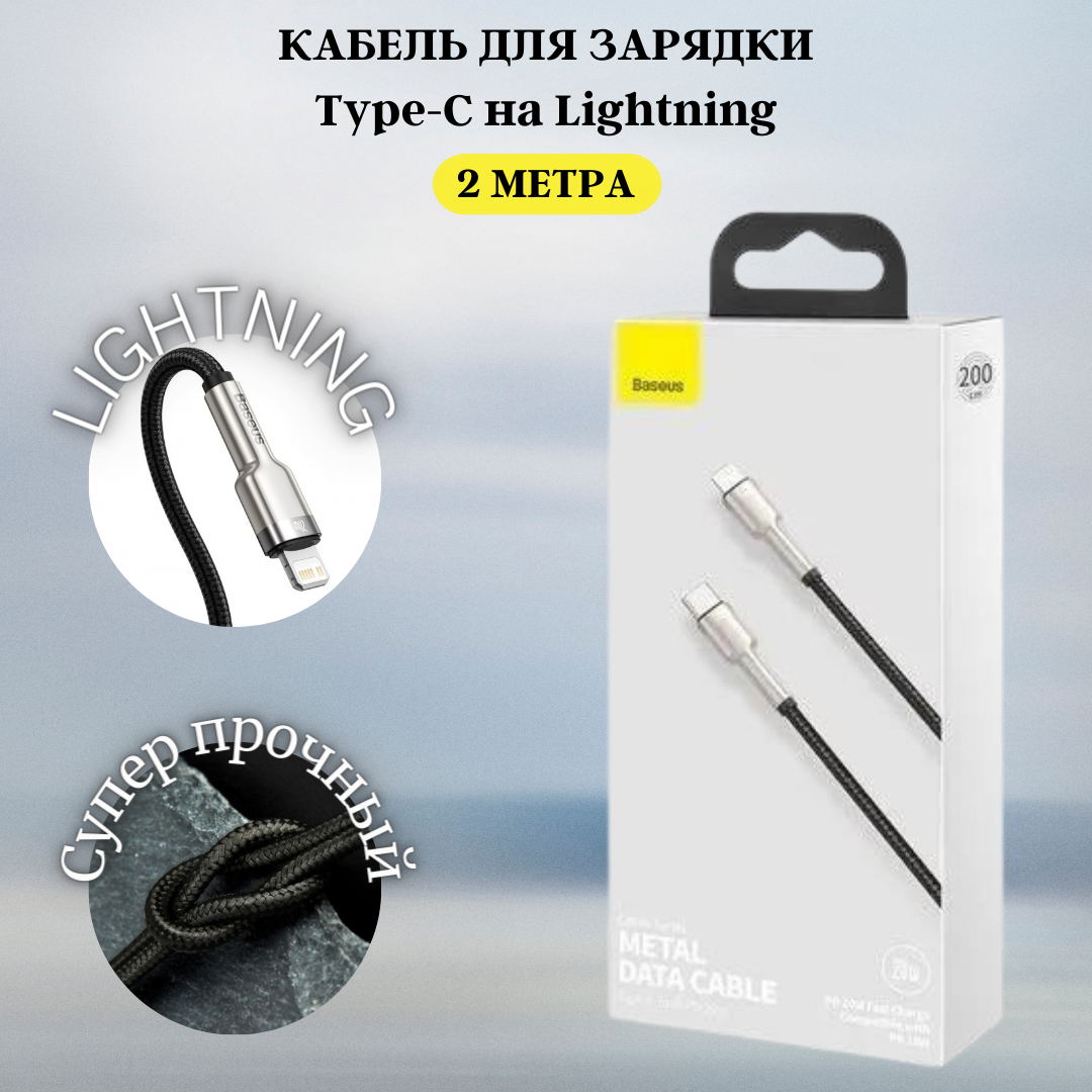 Купить Кабель для айфона 2 метра Baseus Type-C - Lightning провод для айфона лайтинг шнур для Iphone
