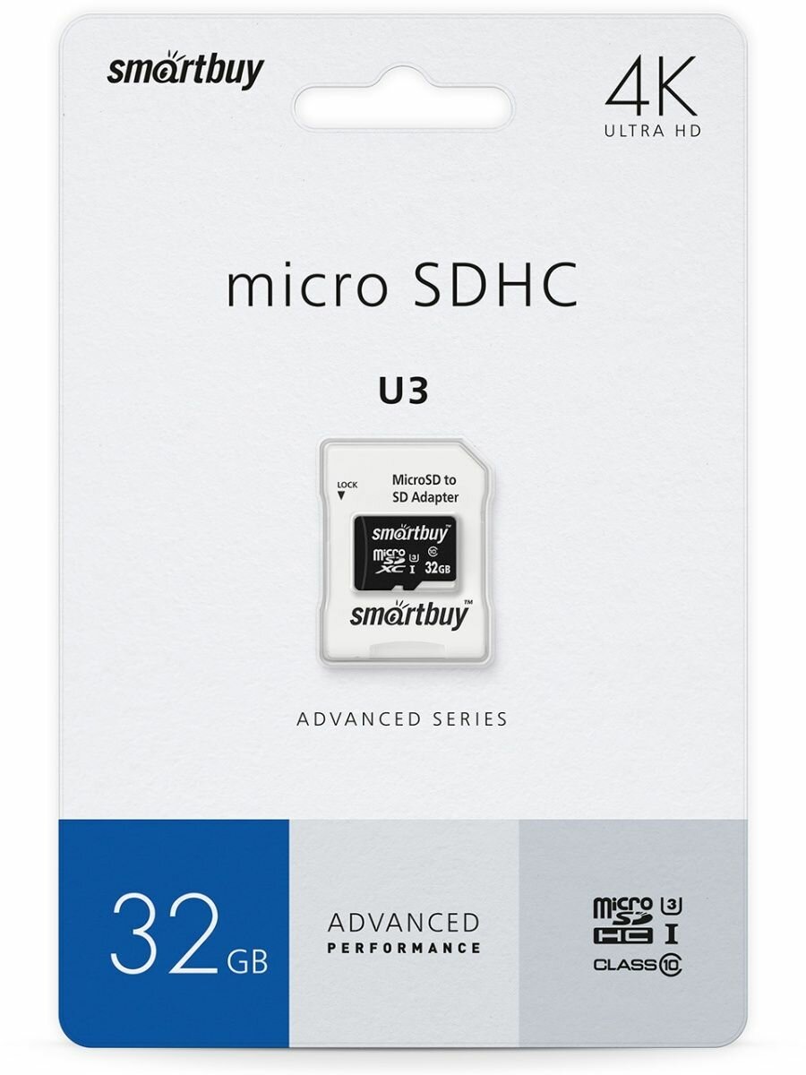 Micro SD Smartbuy 32 Gb Class 10 Advanced U3 UHS-1(с адаптером SD)