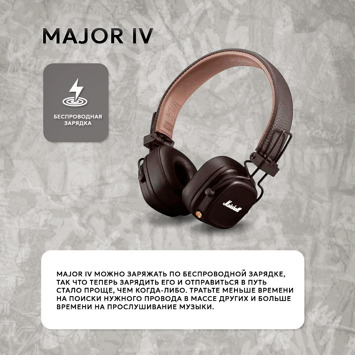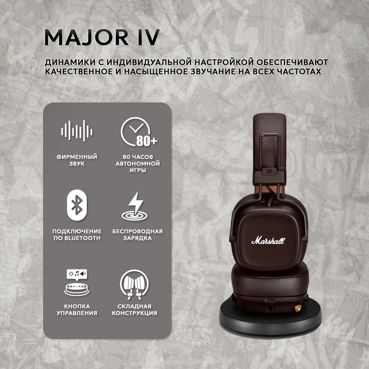 Беспроводные наушники Marshall Major IV, mini jack 3.5 mm, коричневый