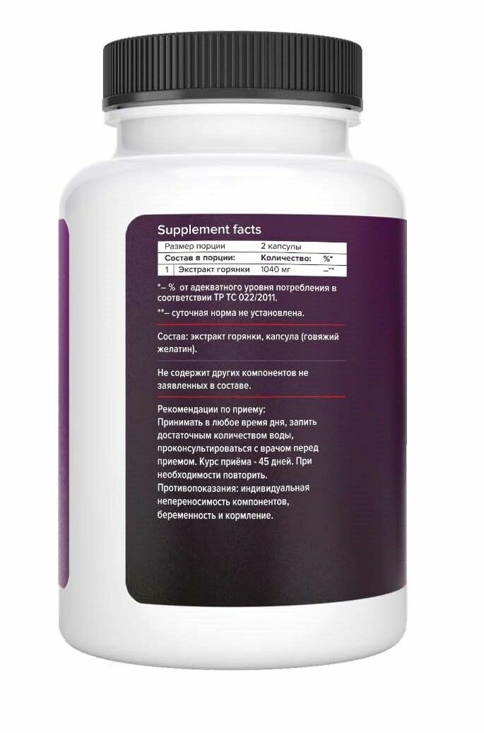 Horny goat weed / Экстракт горянки / Капсулы / 45 порций /90 капсул