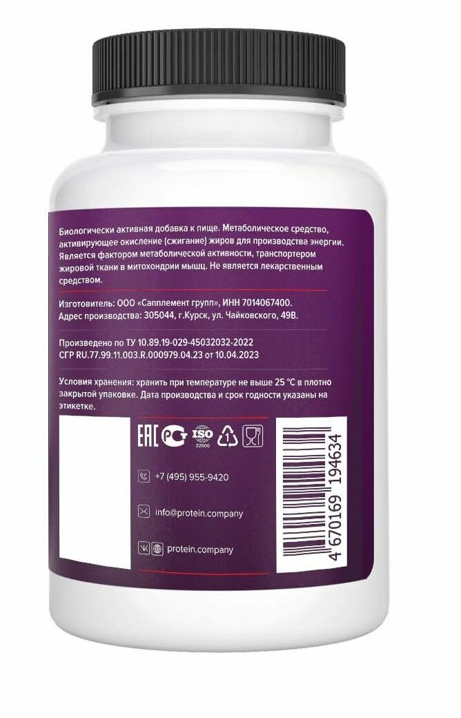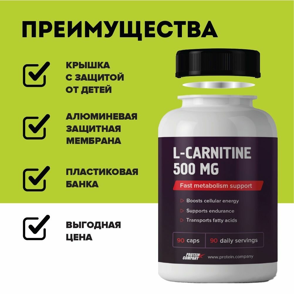 L-Carnitine 500 mg / PROTEIN.COMPANY / L-карнитин / Капсулы / 90 порций / 90 капсул