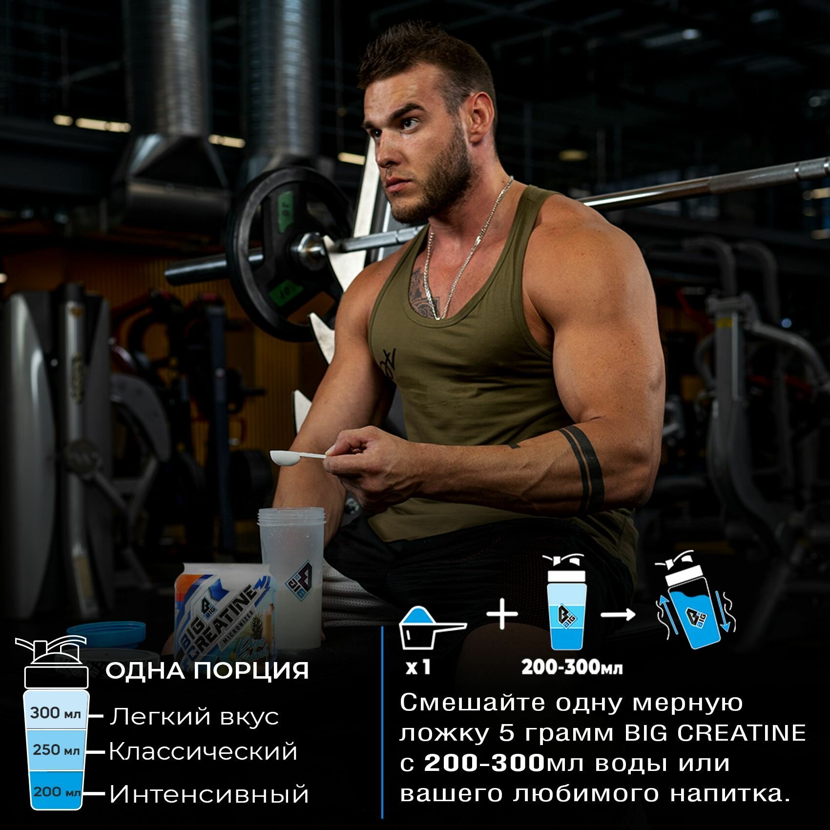 Креатин моногидрат BIGSNT BIG CREATINE для набора мышечной массы, силы и выносливости / спортивное питание, 400 г, 80 порций, вкус Энергетик