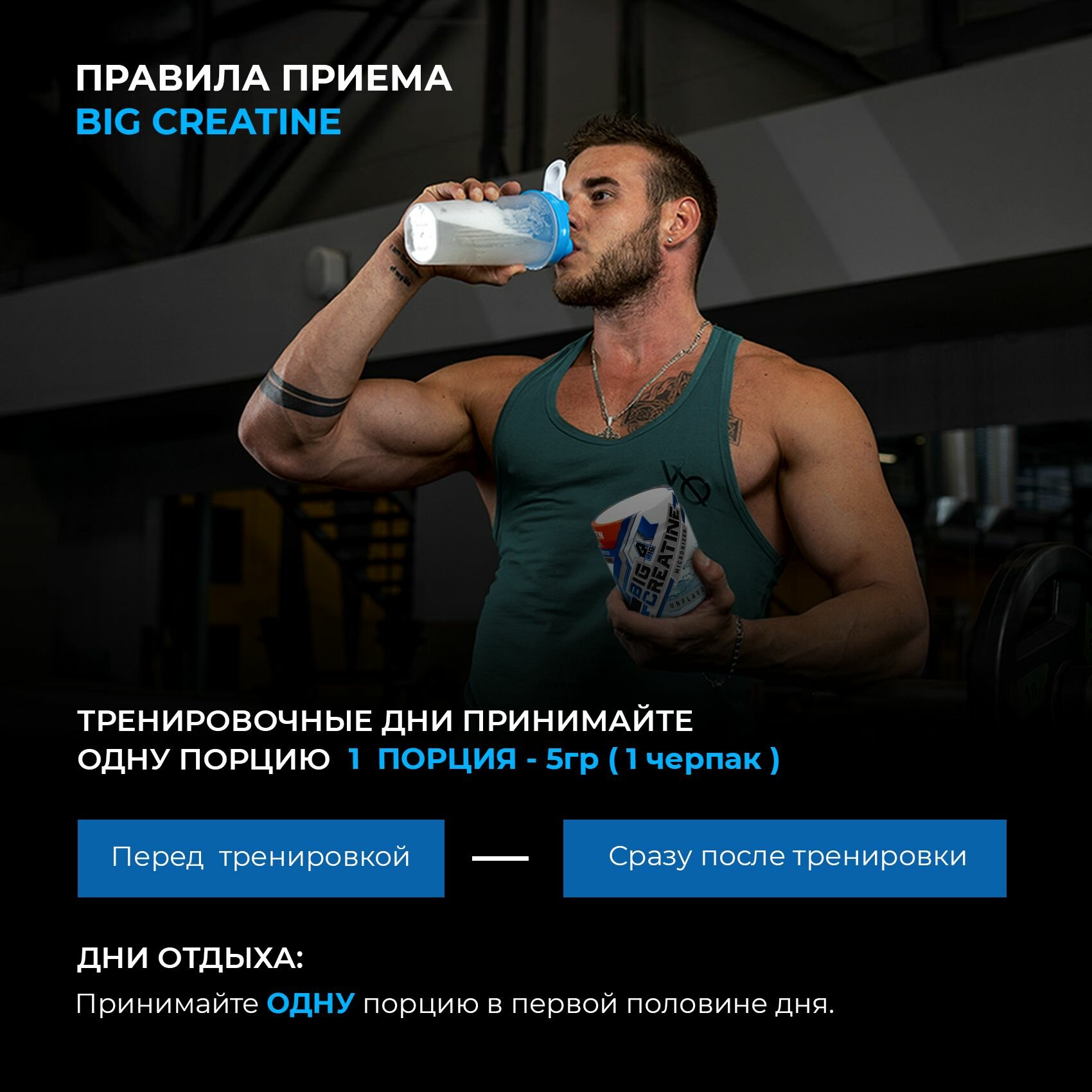 Креатин моногидрат BIGSNT BIG CREATINE для набора мышечной массы, силы и выносливости / спортивное питание, 400 г, 80 порций, вкус Энергетик
