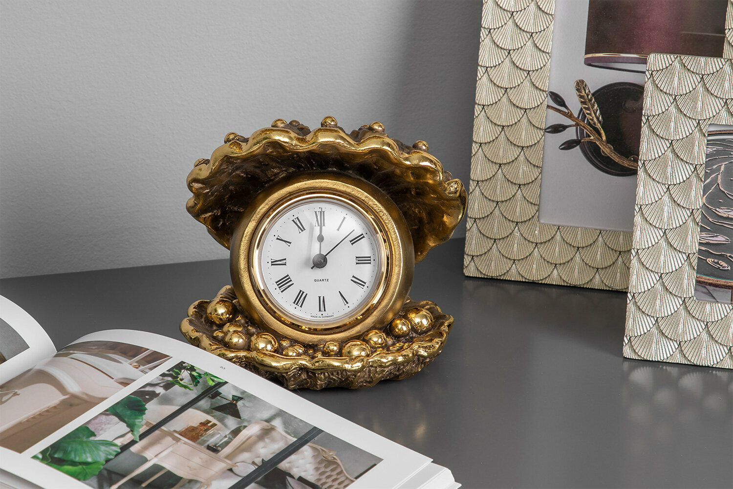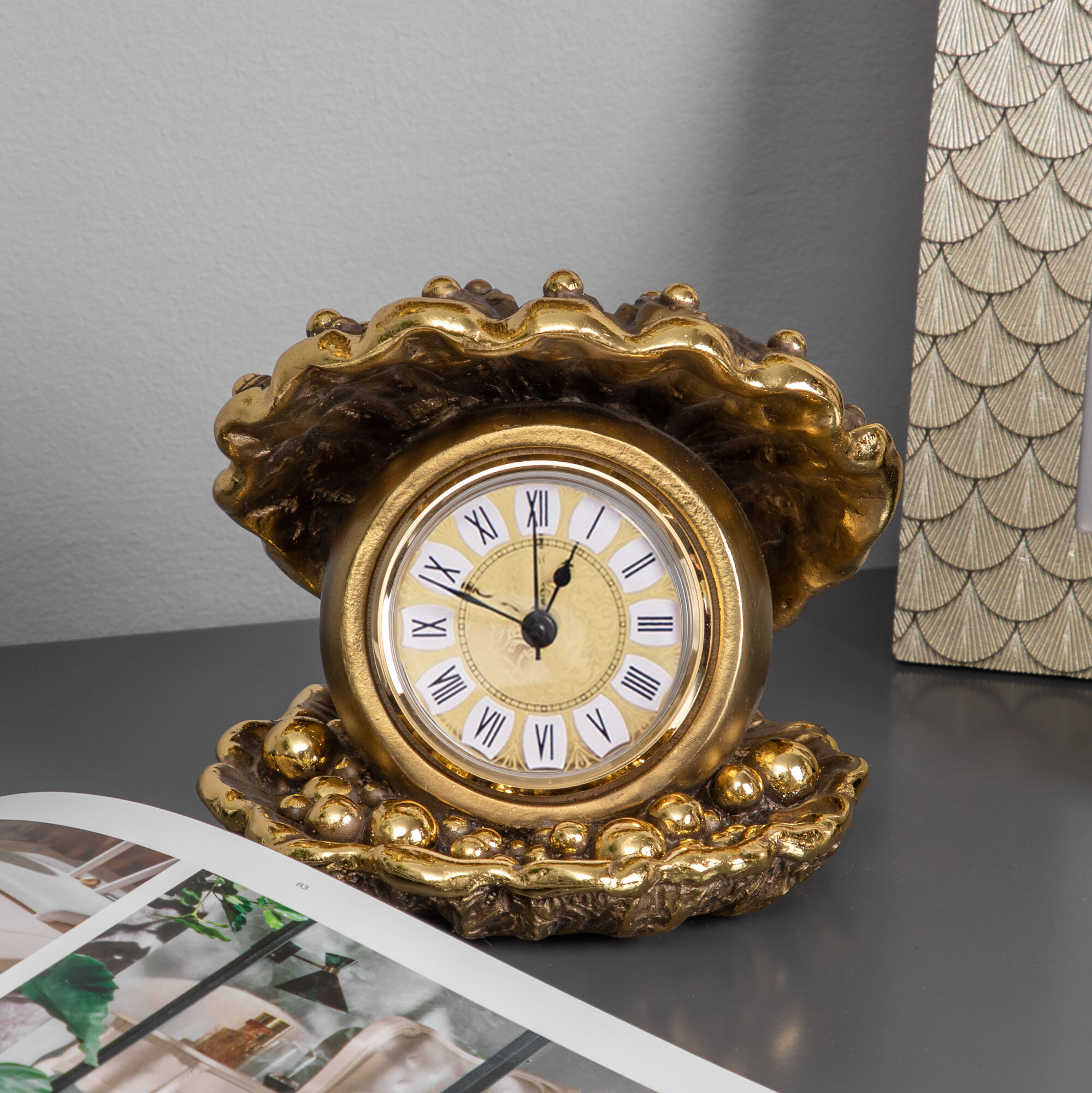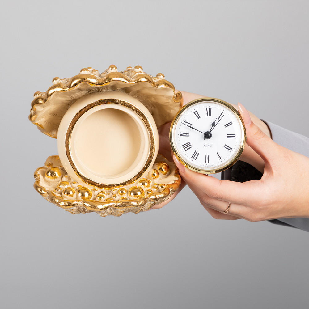 Часы настольные Bogacho ракушка Акойя бронзового цвета интересное: