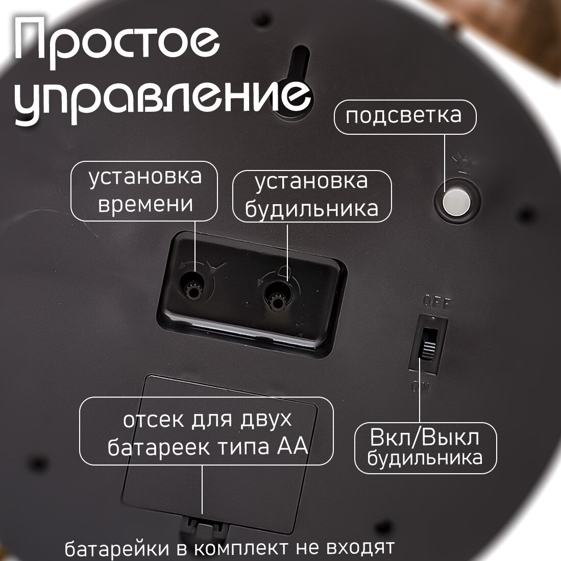 Купить Часы Будильник гигант медного цвета с подсветкой Эврика, часы настольные большие, подарочные