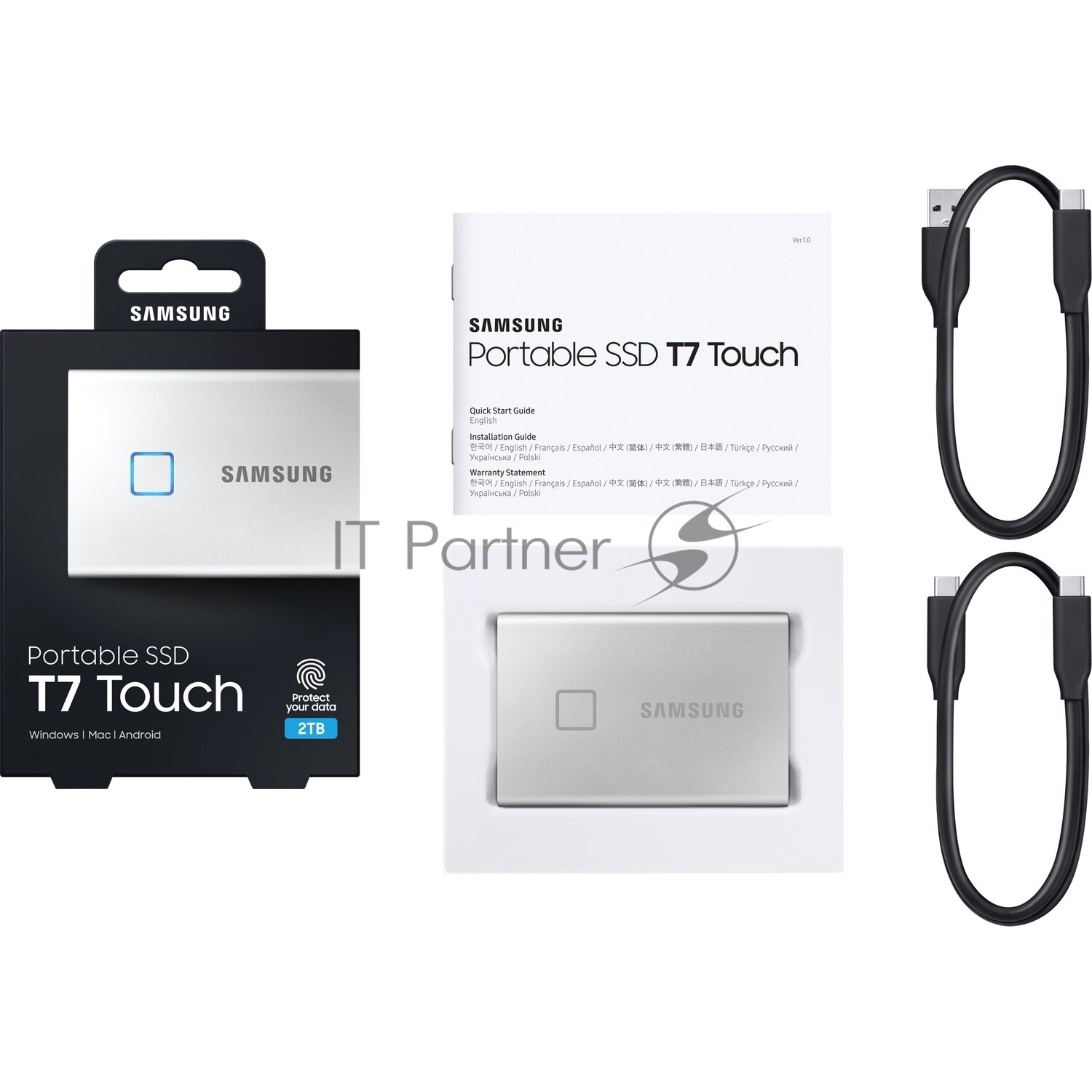 Внешний SSD Samsung T7 Touch 2 ТБ, USB 3.2 Gen 2 Type-C, серебристый (MU-PC2T0S)