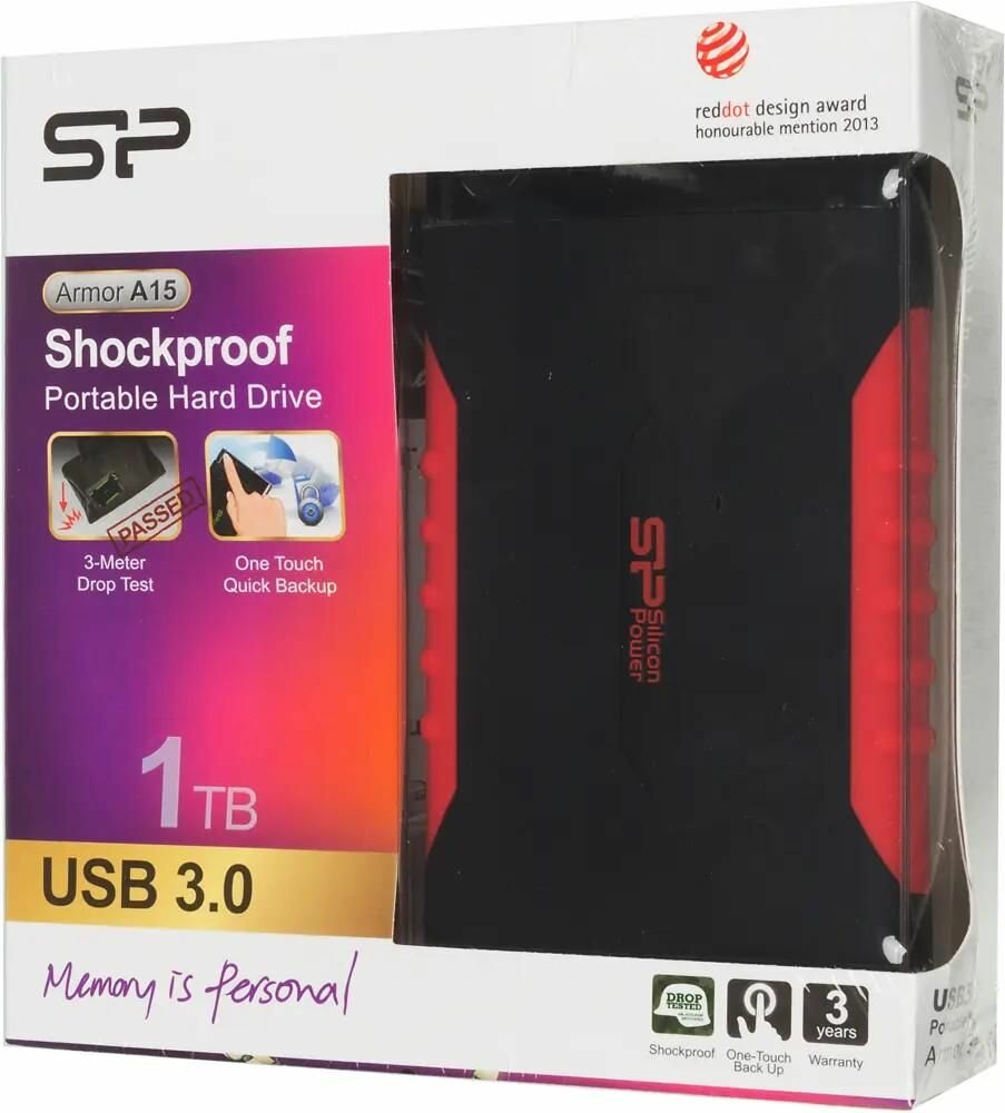 Внешний жесткий диск Silicon Power Armor A15 1Tb черно-красный (SP010TBPHDA15S3L)