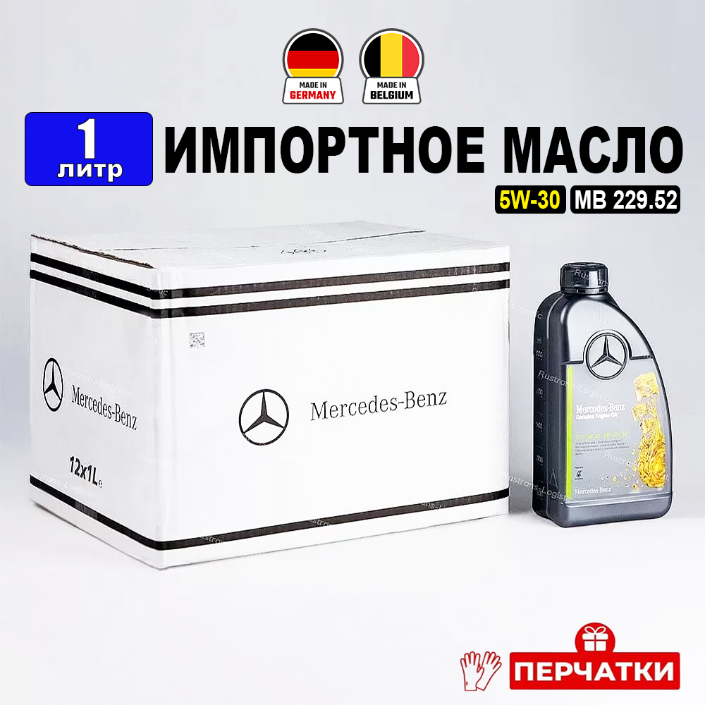Купить Масло моторное Mercedes-Benz 5W-30, MB229.52 DIESEL (Бельгия) (1л) + перчатки, масло для автомобиля Мерседес 5w30 A000989700611ABDW, РТЛ