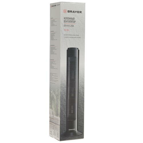BRAYER BR4952BK Колонный вентилятор BRAYER, механич.упр., вращение 90°, мощность 50Вт, защита от перегрева,черный