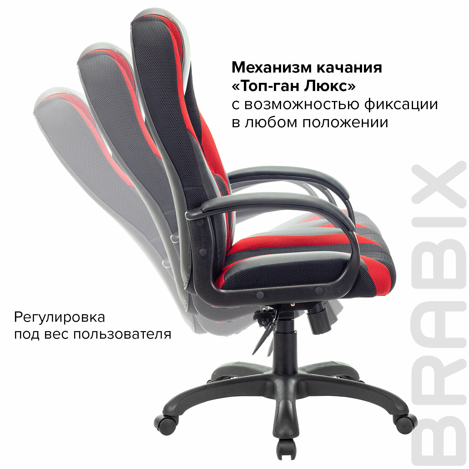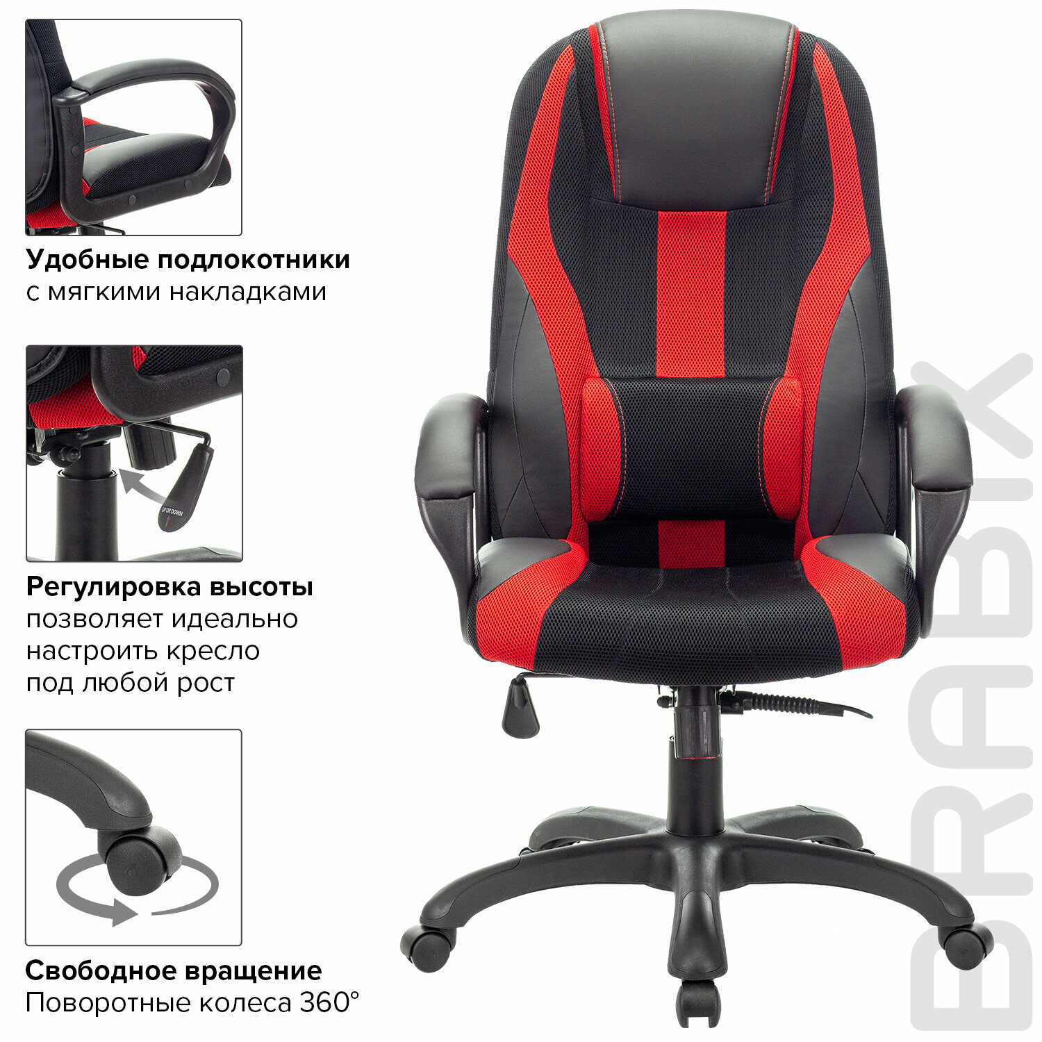 Кресло геймерское Brabix PREMIUM "Rapid GM-102", нагрузка 180 кг, экокожа/ткань, черное/красное