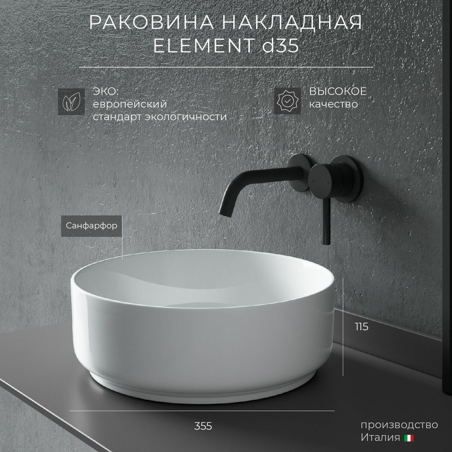 CN5001 Умывальник чаша накладная круглая Element 360*360*120мм