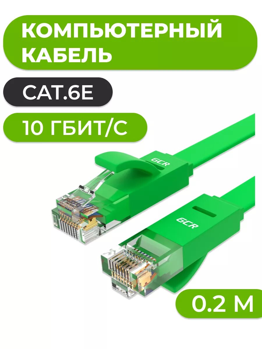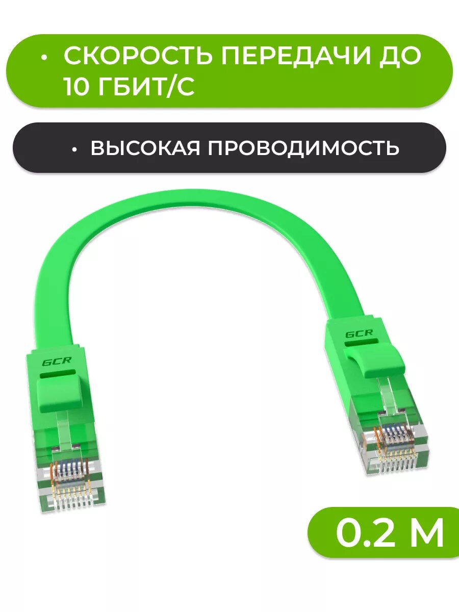 Патч-корд 20м GCR PROF плоский UTP cat.6 10 Гбит/с RJ45 LAN компьютерный кабель для интернета медный контакты 24K GOLD (GCR-LNC62) зеленый