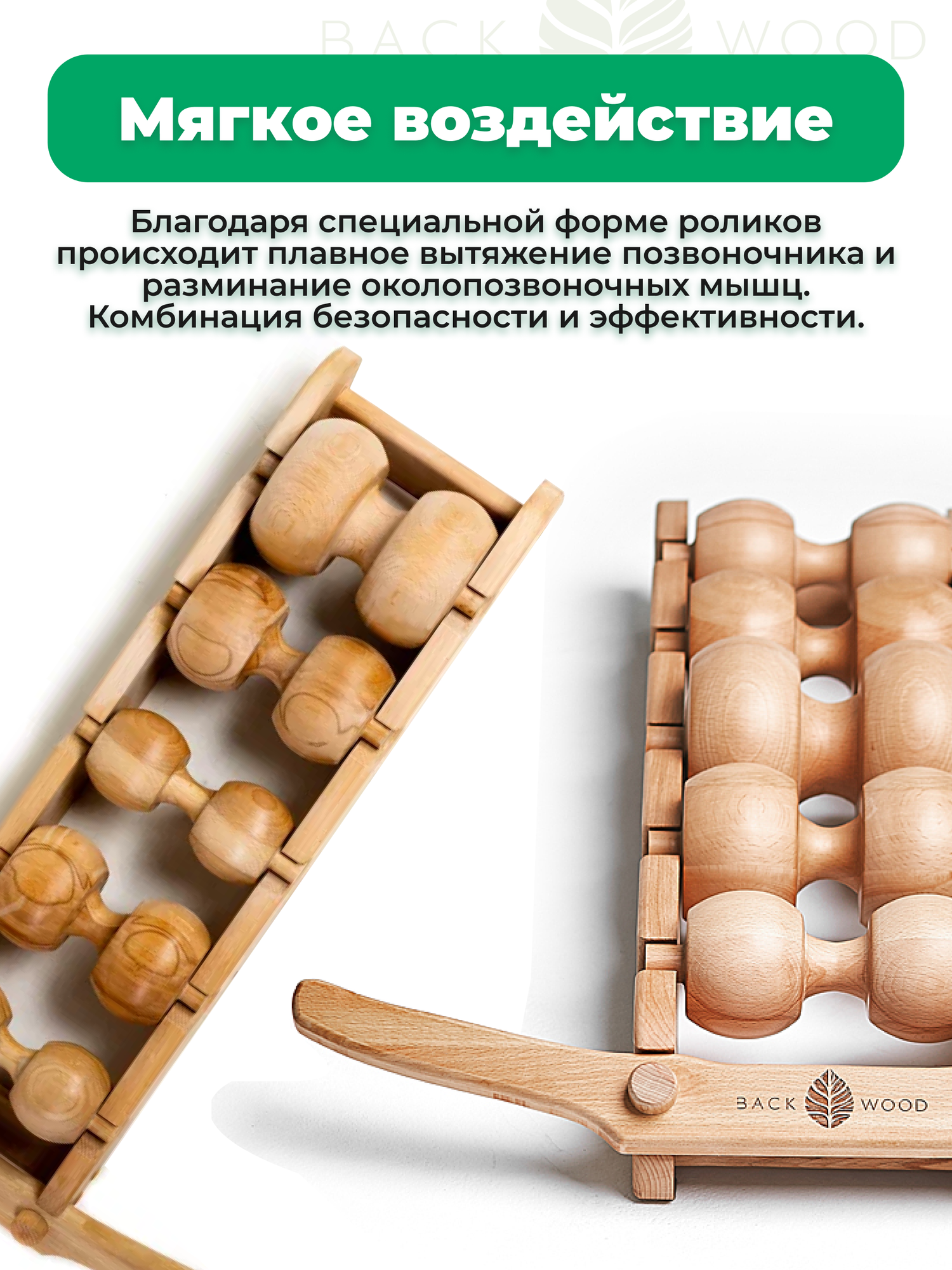 Деревянный 6-ти роликовый массажер и тренажер для спины и всего тела"BackWooD" + Шипованный ролик