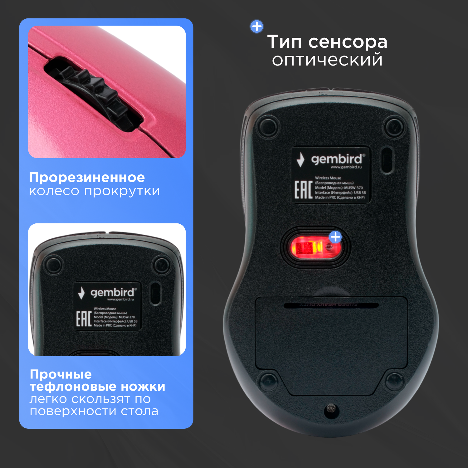 Мышь беспроводная GEMBIRD MUSW-370 (розовый)
