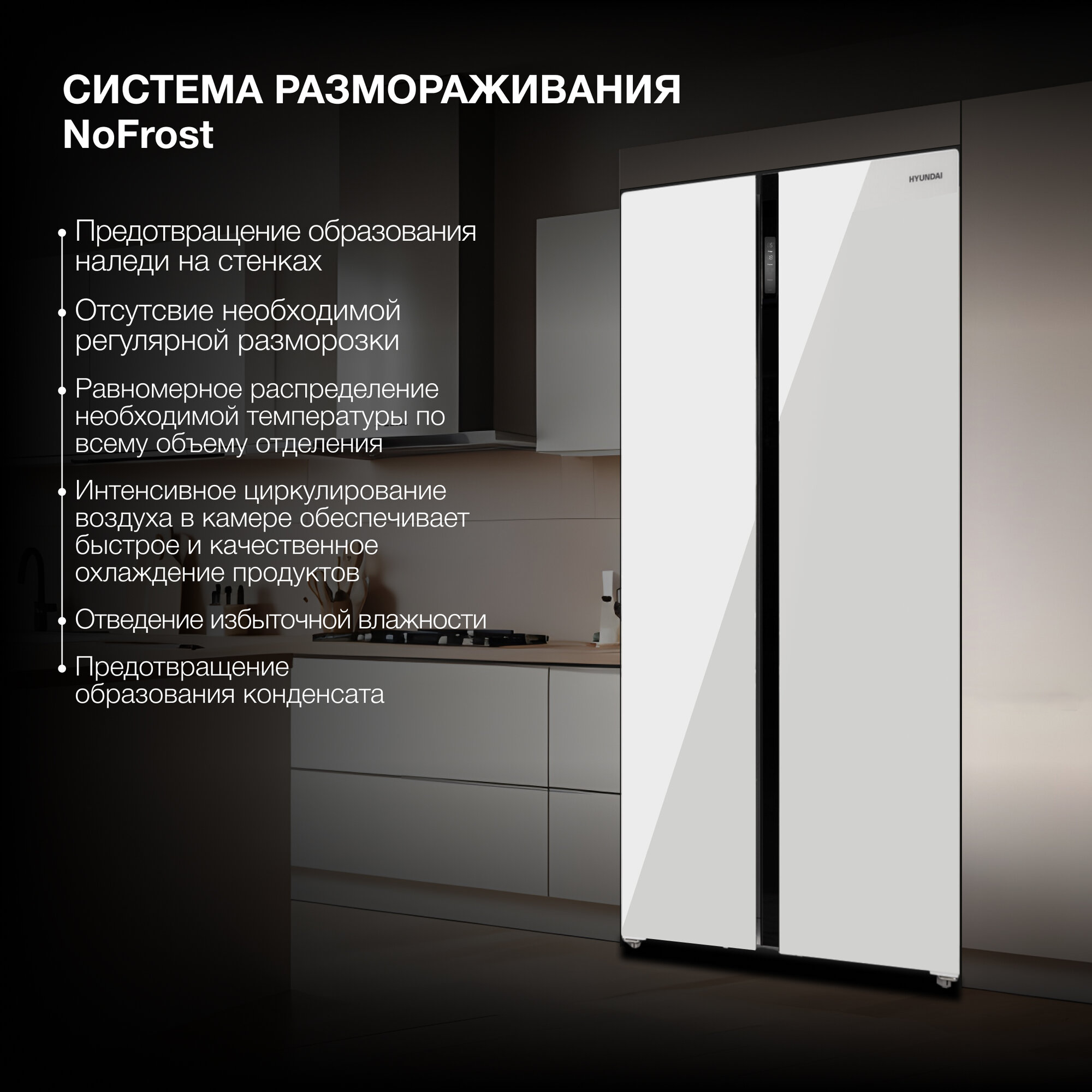 Холодильник Hyundai CS6503FV белое стекло (двухкамерный) интересное: