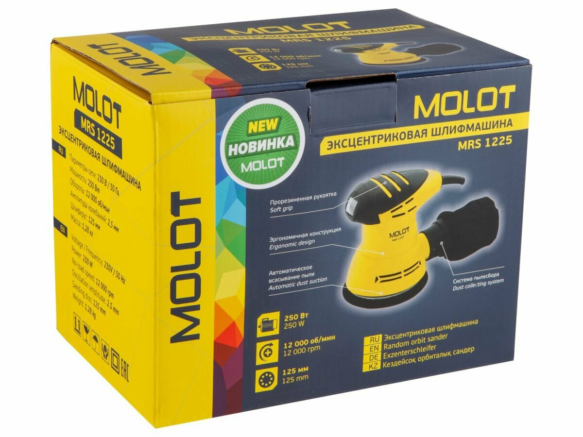 Эксцентриковая шлифмашина MOLOT MRS 1225 в кор. (250 Вт, 125 мм, 12000 об/мин) (MRS122500011)