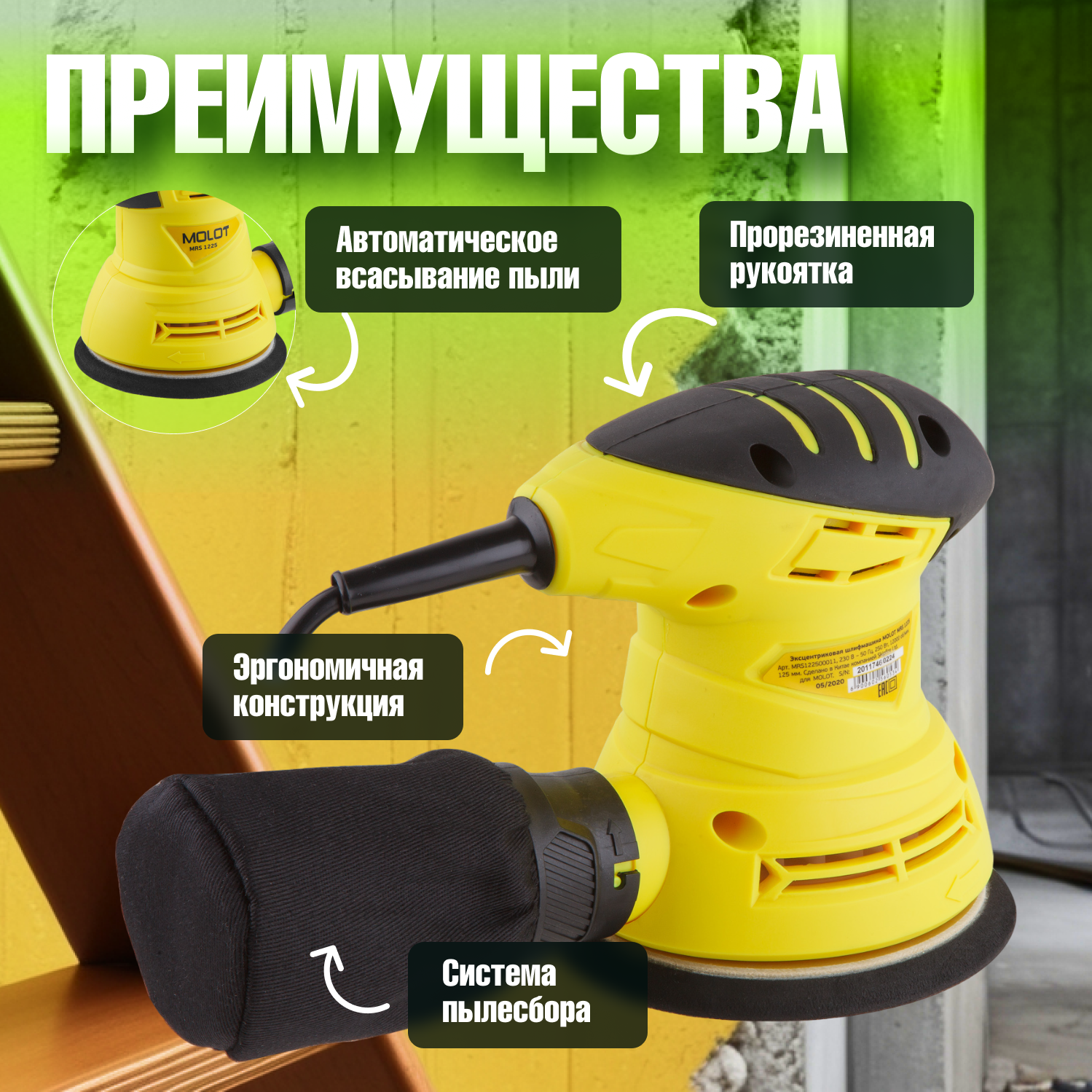 Шлифмашина эксцентриковая MOLOT MRS 1225 интересное: