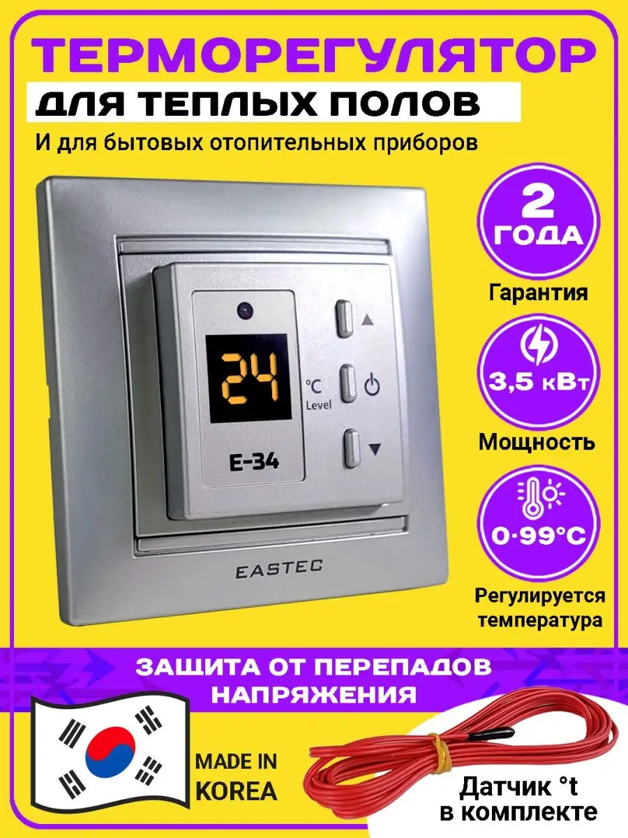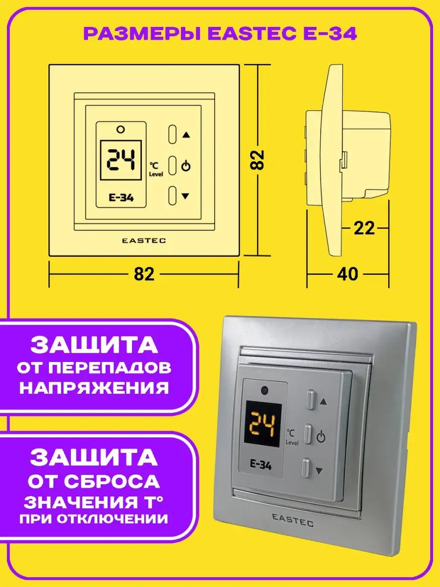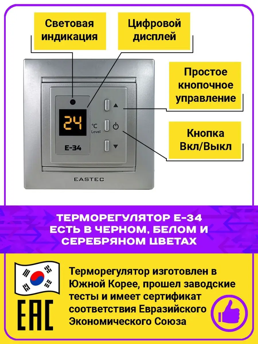 Терморегулятор EASTEC E-34 серебро (Встраиваемый 3,5 кВт)