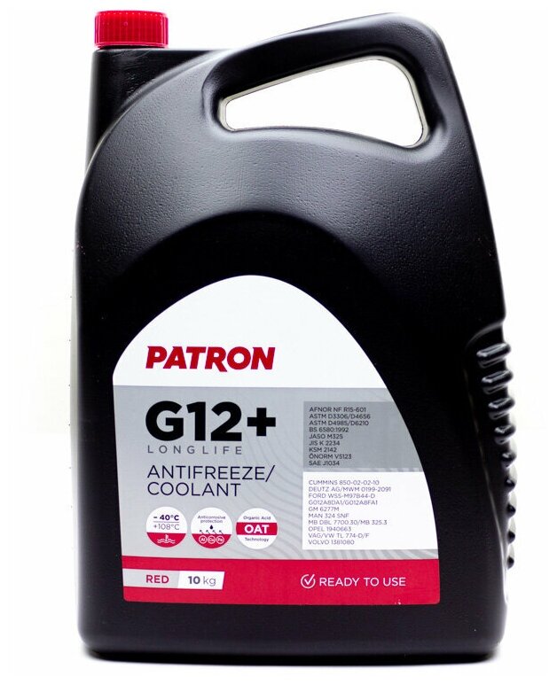 Антифриз 10кг (8.9л) - Красный Готовый, Patron Red G12+, Tl 774-D/F, G012a8da1, G012a8fa1, Wss-M97b44-D, 6277m, Man 324 Snf, ...