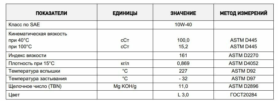 | Класс вязкости SAE | 10W-40 |