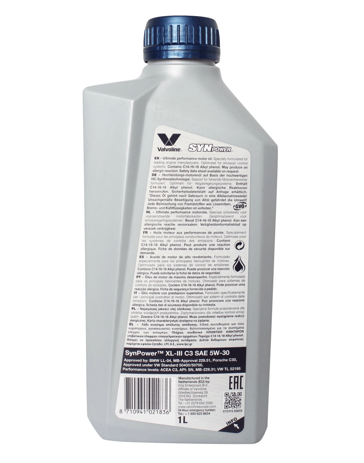 VALVOLINE 872372 SYNPOWER XL-III C3 5W30 1 SW,
