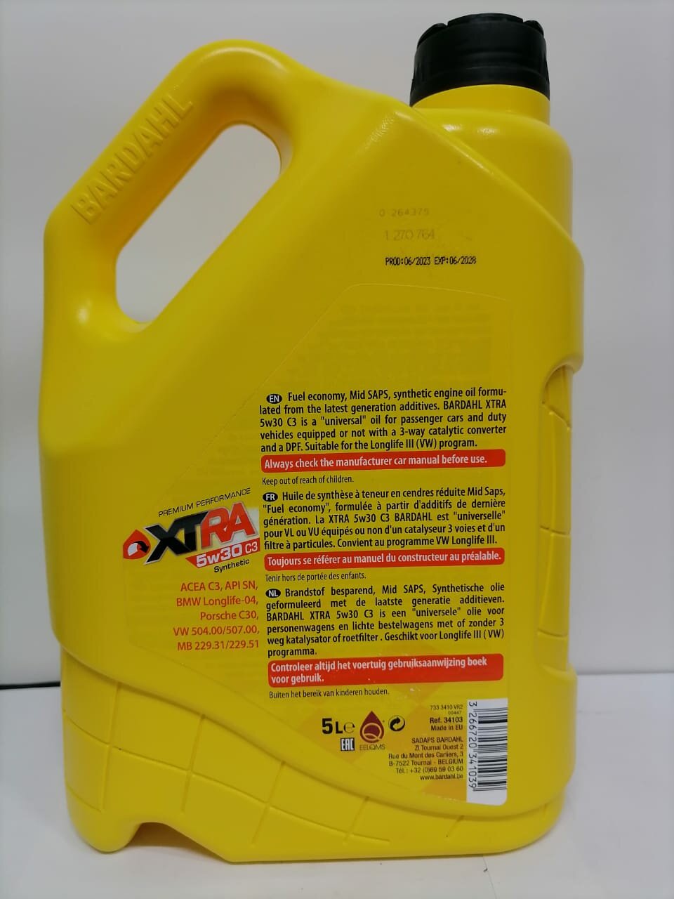 BARDAHL 34103 5W30 XTRA C3, SN 5L (синт. моторное масло) BARDAHL