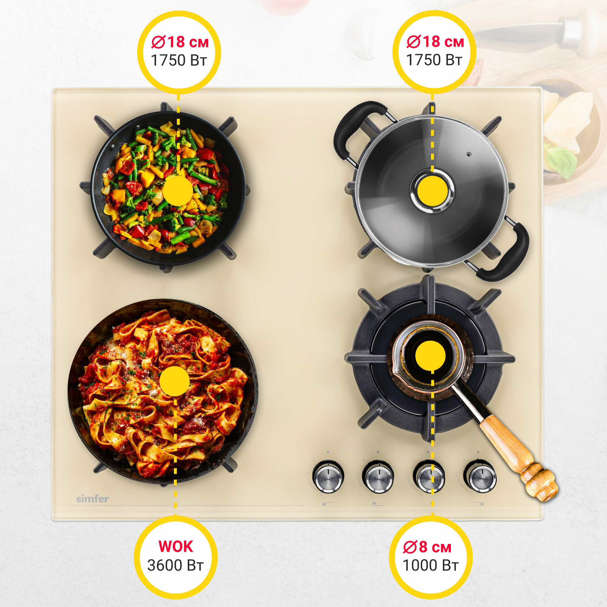 Газовая варочная поверхность Simfer H60N41W571 с газ-контролем, WOK-конфоркой
