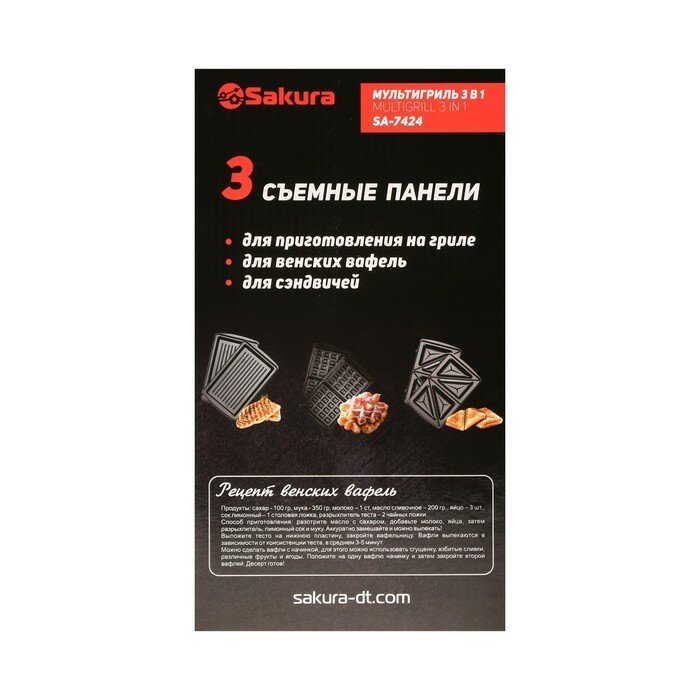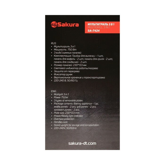 Мультигриль Sakura SA-7424 3 в 1 750Вт антипригар.покрытие