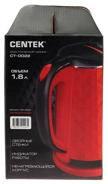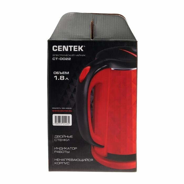 Чайник Centek Ct-0022, 2100 Вт, 1,8 Л, Красный,Двойной Корпус-Сталь+Пластик CENTEK арт. CT0022