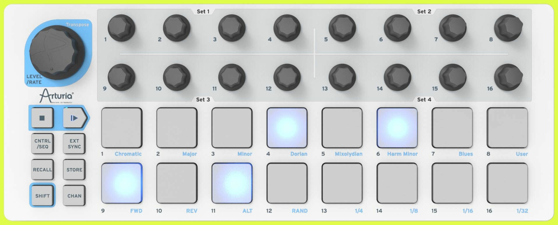 Arturia BeatStep USB MIDI контроллер, позволяет запускать клипы в Ableton Live, а также проигрывать