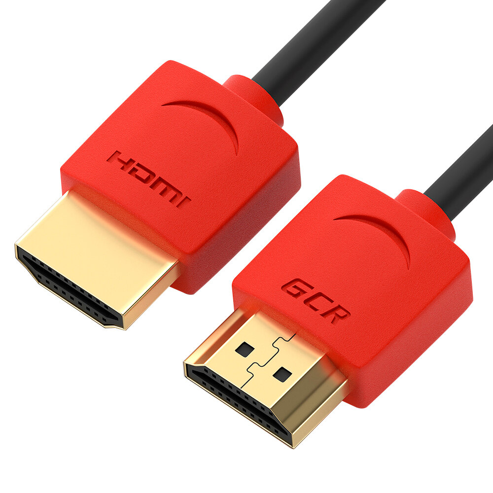 GCR Кабель SLIM 1.0m HDMI 2.0, красные коннекторы, OD3.8mm, HDR 4:2:0, Ultra HD, 4K 60 fps 60Hz, 3D, AUDIO, 18.0 Гбит/с, 30/30 AWG
