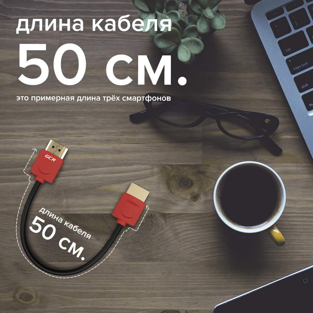 HDMI 2.0 шнур короткий 50см GCR Ultra HD 4K 60Hz 3D 18.0 Гбит/с черный с красными коннекторами для Smart TV 24K GOLD
