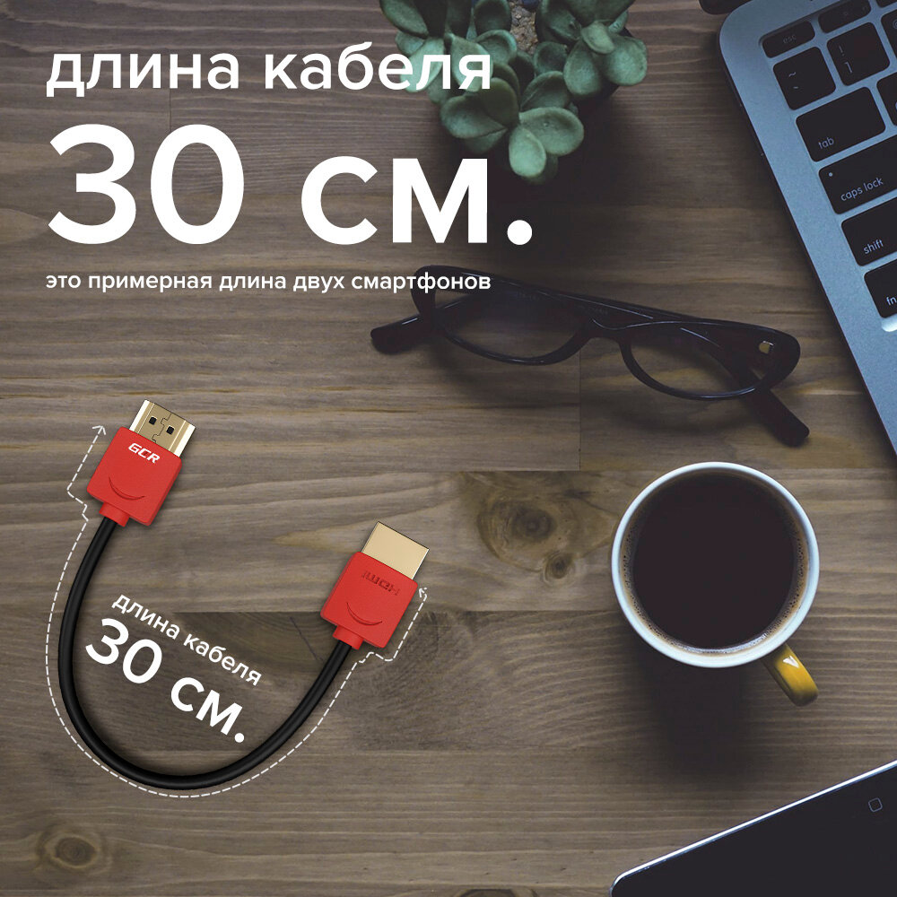 Шнур 50см GCR HDMI 2.0 Ultra HD 4K 60Hz 3D 18.0 Гбит/с черный с красными коннекторами 24K GOLD