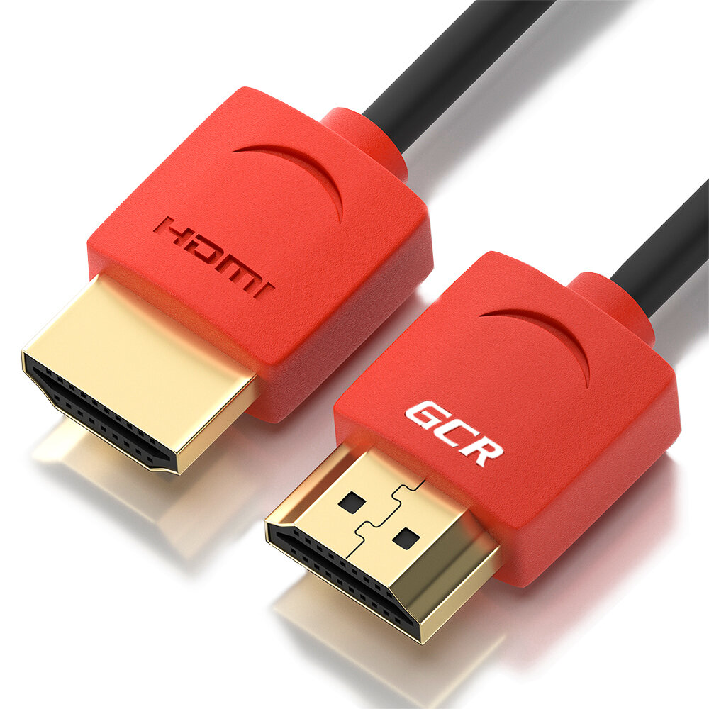 GCR Кабель SLIM 1.0m HDMI 2.0, красные коннекторы, OD3.8mm, HDR 4:2:0, Ultra HD, 4K 60 fps 60Hz, 3D, AUDIO, 18.0 Гбит/с, 30/30 AWG