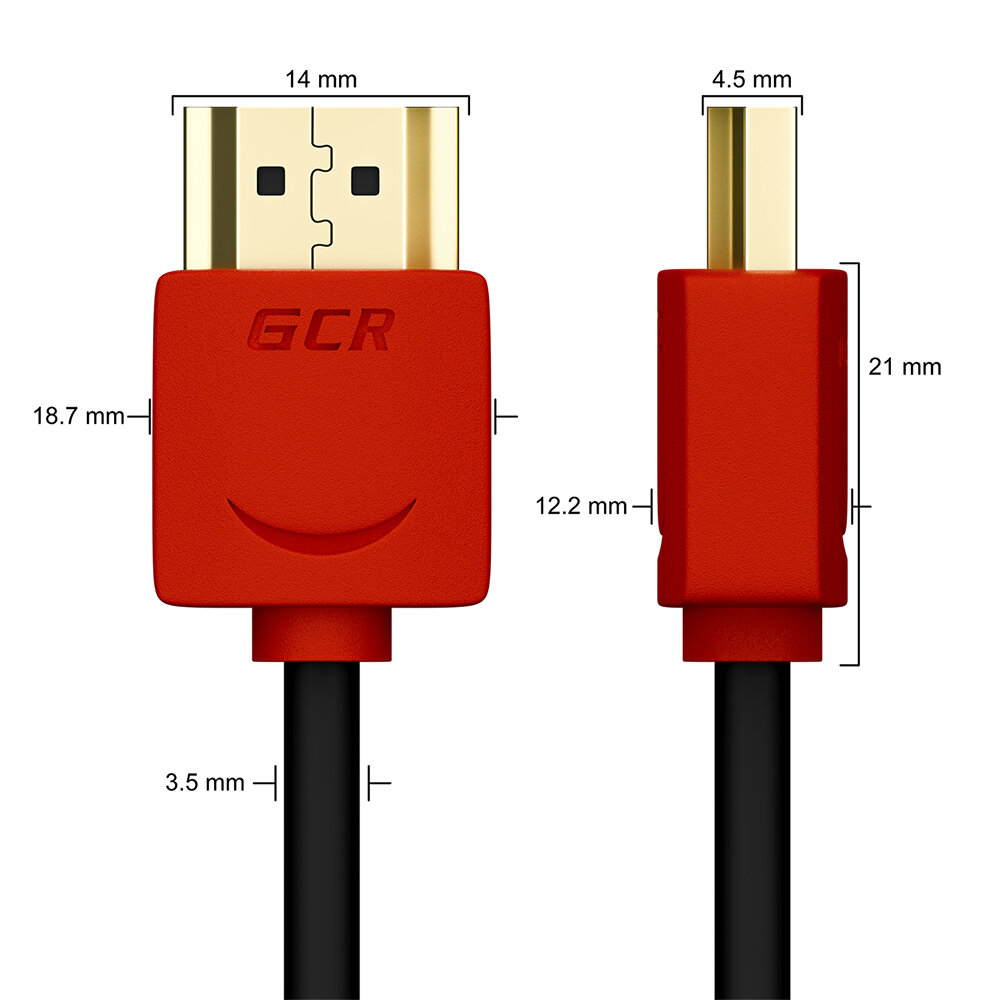 Шнур 50см GCR HDMI 2.0 Ultra HD 4K 60Hz 3D 18.0 Гбит/с черный с красными коннекторами 24K GOLD