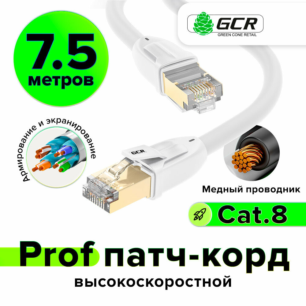 Купить Патч-корд CAT8 прямой LSZH SF/FTP RJ45 40 Гбит медь LAN сетевой кабель для интернета (GCR-L306) белый 7.5м