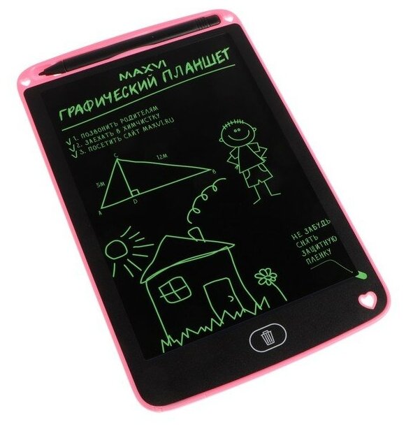 Планшет графический для заметок и рисования LCD Maxvi MGT-01 pink монохромный