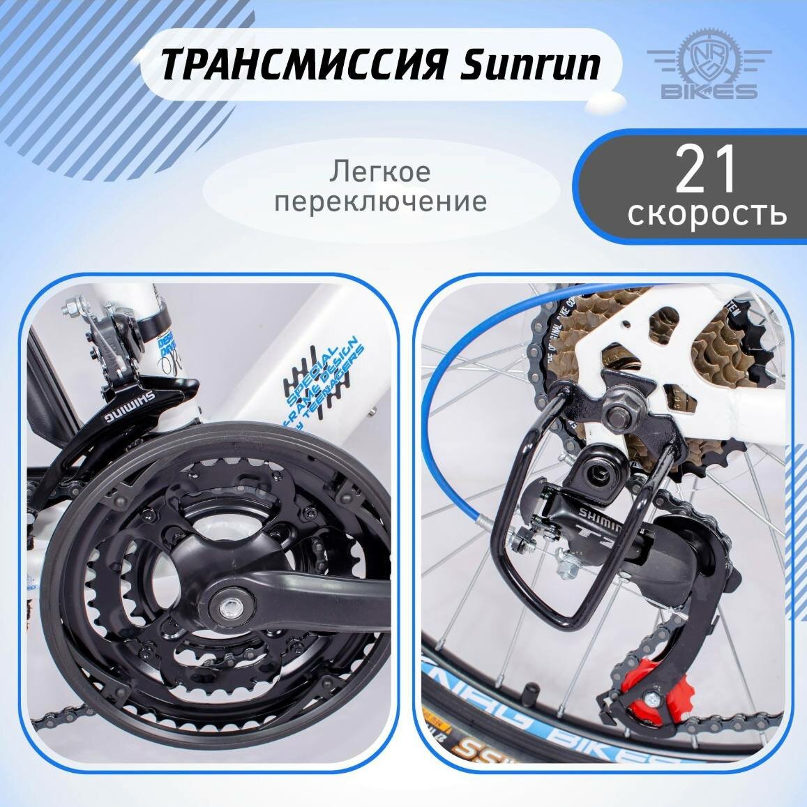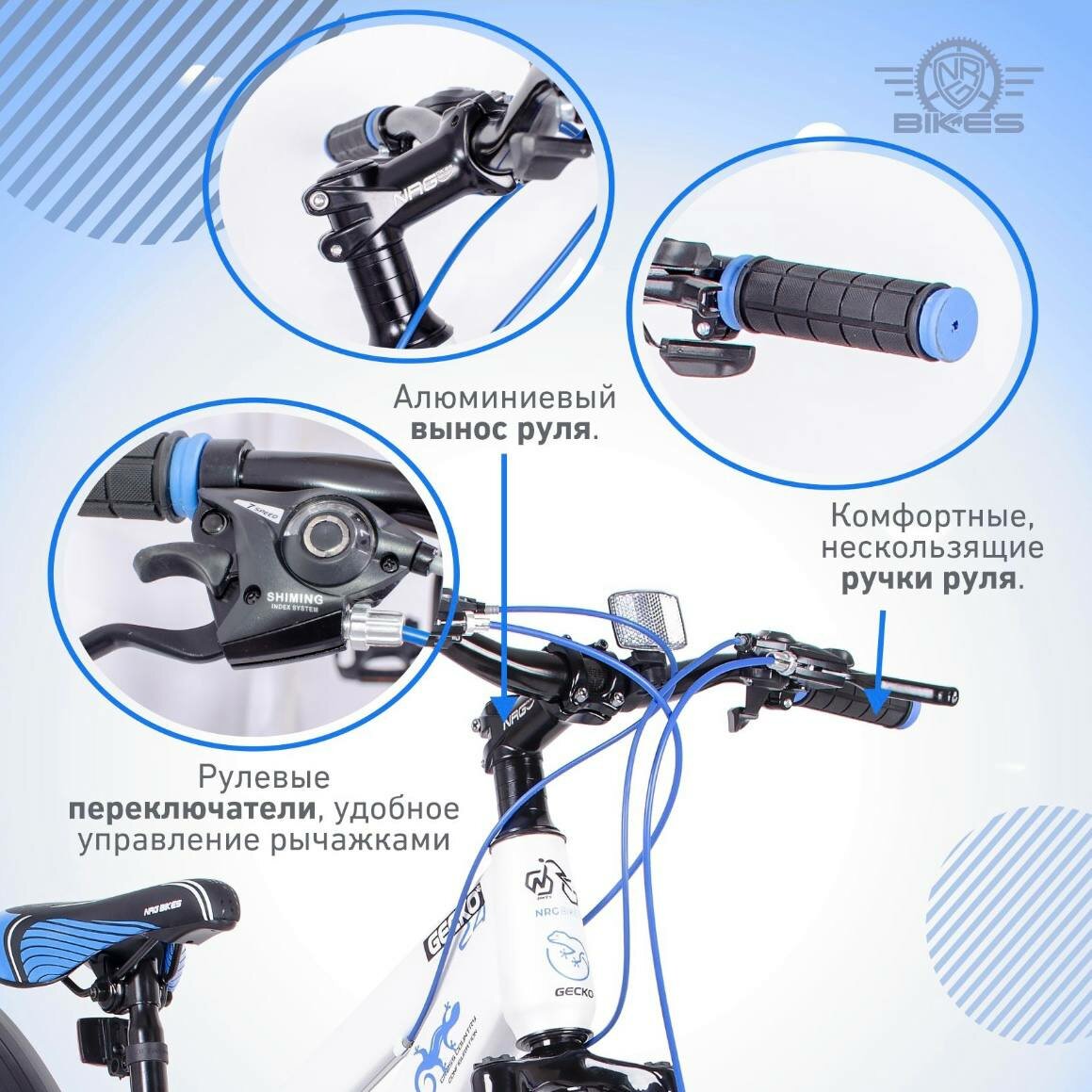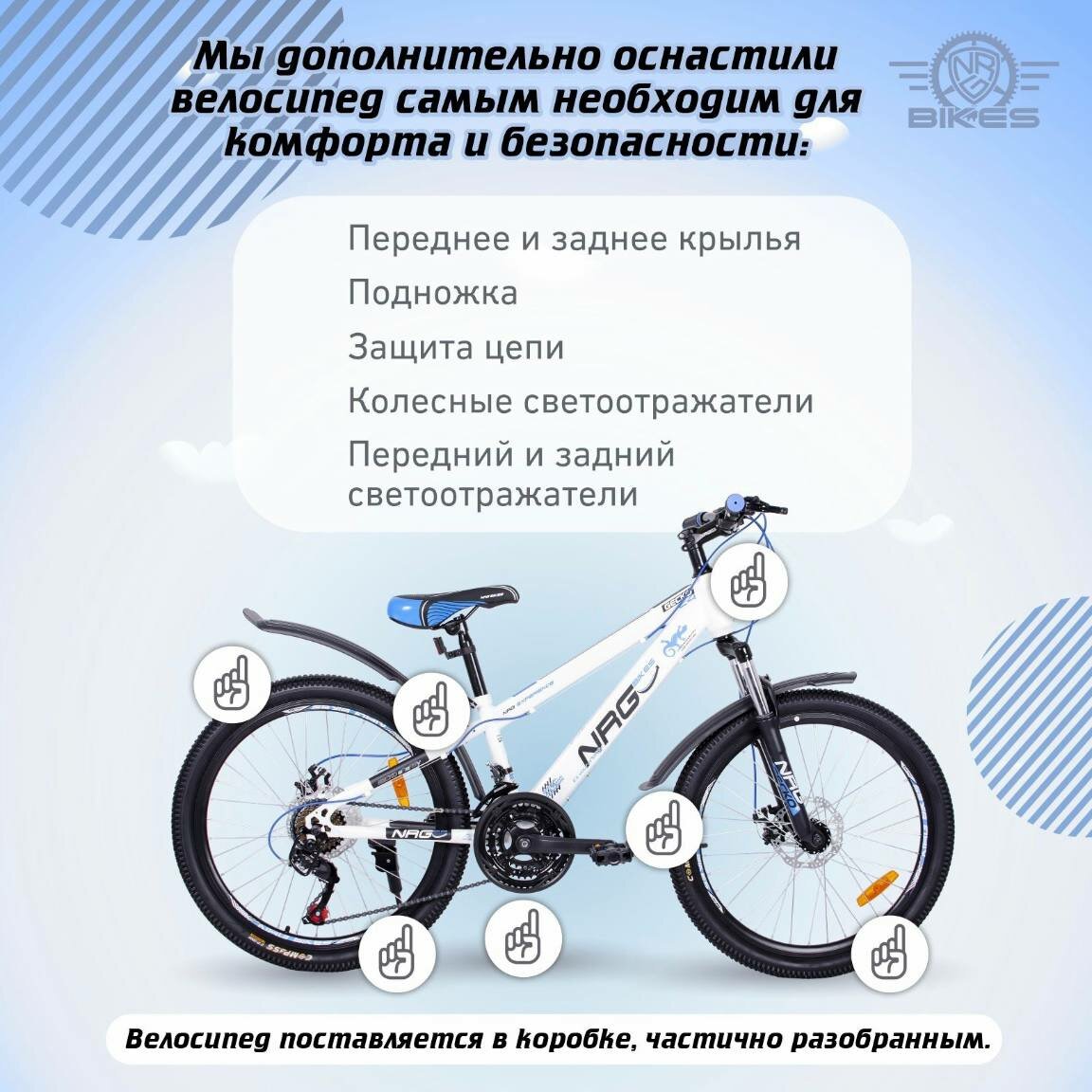 Горный Велосипед NRG Bikes GECKO 24''/12'' white-black-blue, 21 скорость, 2022 год