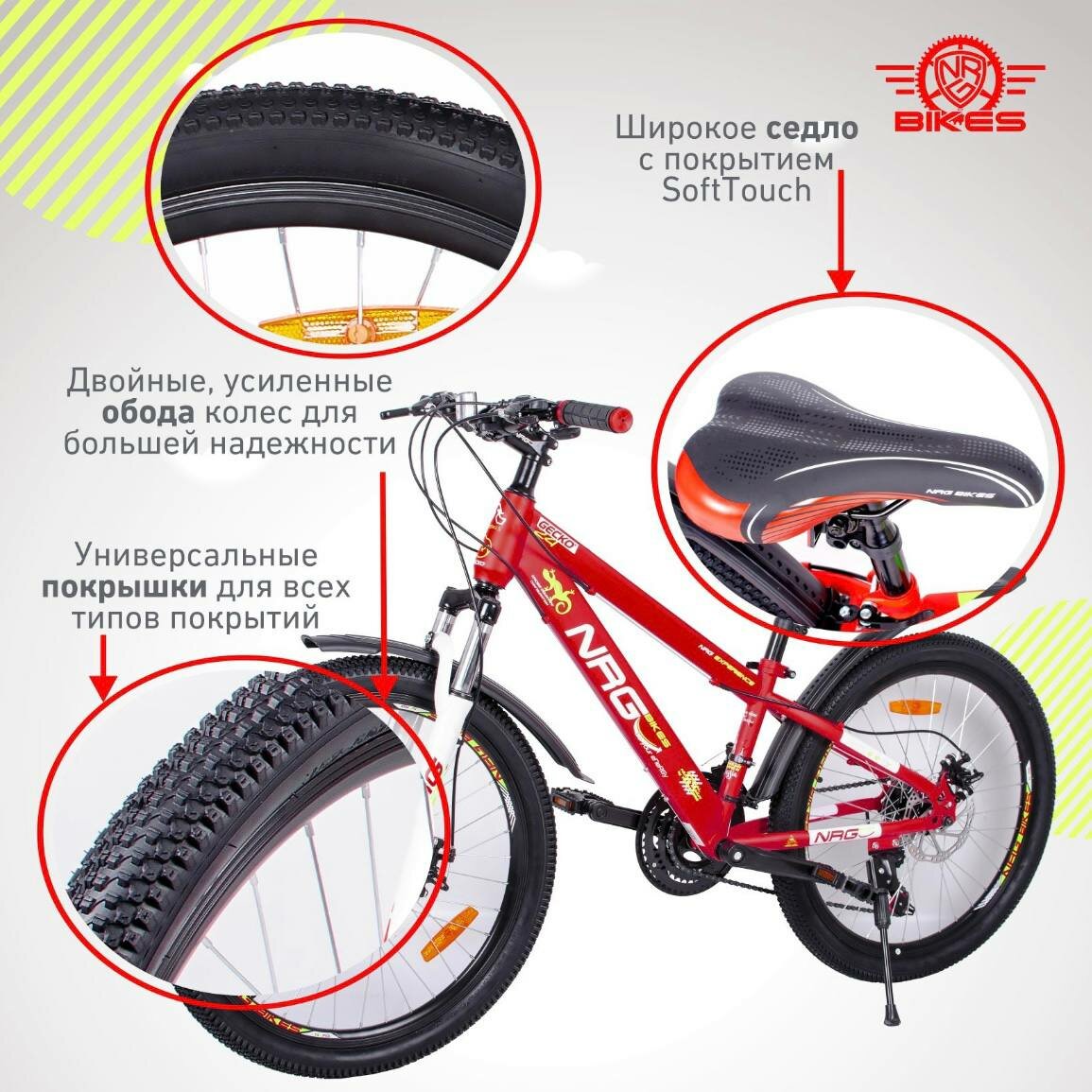 Горный Велосипед NRG Bikes GECKO 24''/12'' red-white-lemon , 21 скорость, 2022 год