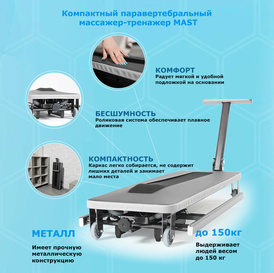 | Плюсы: | Удобный,можно расслабиться и проработать проблемный участок.Сделан добротно!После первого раза,даже я заметил улучшения. |