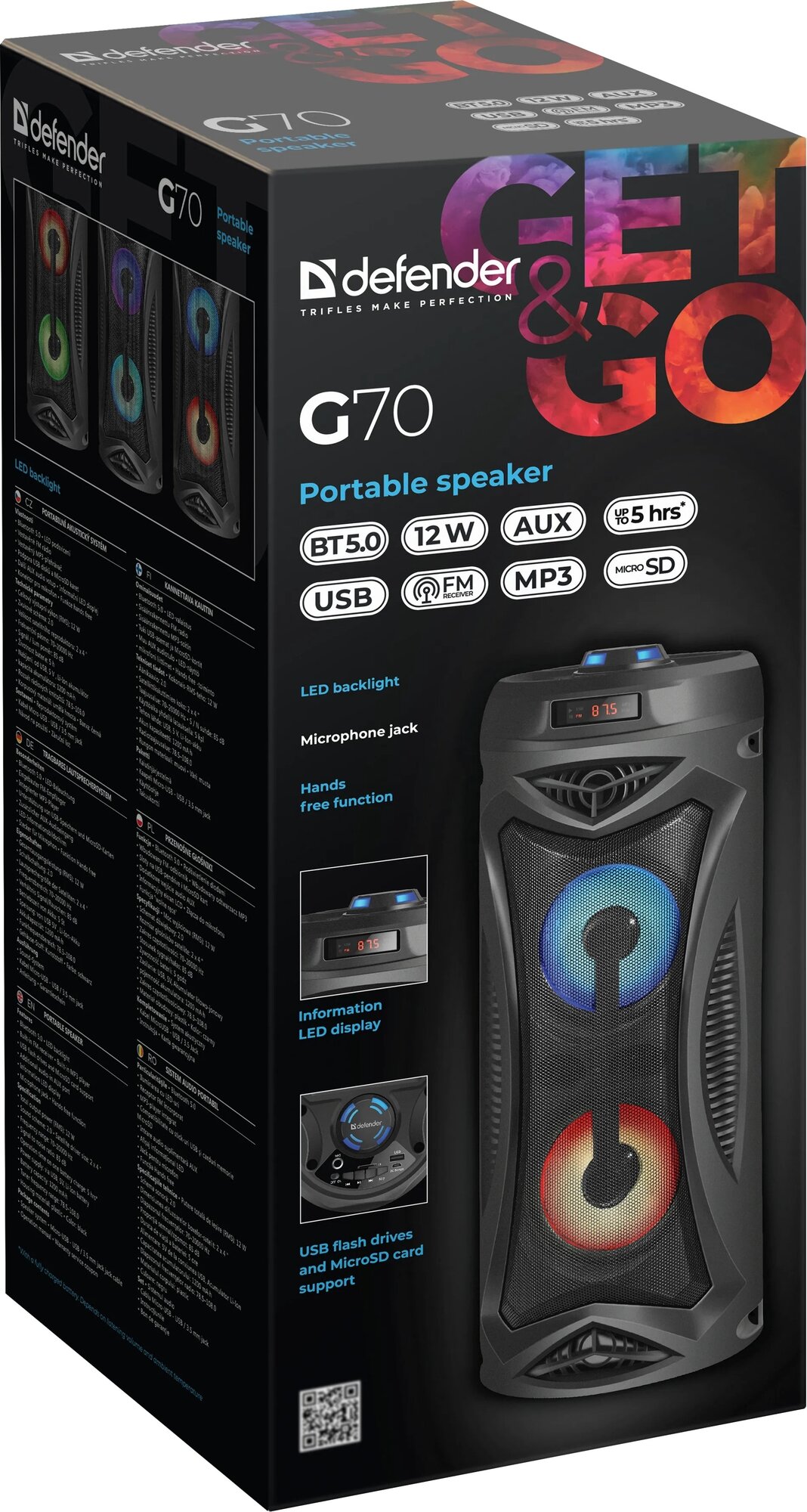 Портативная акустика Defender G70 12Вт, BT/FM/TF/USB/MIC/Light (65171)